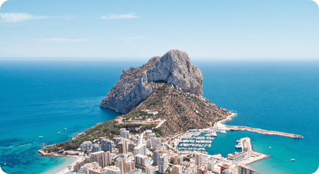 Located on Spain's eastern coast, the Costa Blanca boasts a privileged Mediterranean climate with over 300 days of sunshine per year and mild temperatures that invite outdoor living all year round. This sunny and charming environment turns everyday life into pure enjoyment.