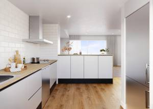 El interior de las viviendas está diseñado para ofrecer el máximo confort y funcionalidad. Las opciones de distribución incluyen viviendas con 2 o 3 dormitorios, todas ellas con 2 baños, lo que asegura un espacio adecuado para familias de diferentes tamaños. Los armarios empotrados proporcionan un almacenamiento eficiente, manteniendo los espacios ordenados y libres de desorden. Los suelos de plataforma flotante añaden un toque moderno y elegante a cada estancia, mientras que la inclusión de electrodomésticos en la cocina facilita la vida diaria de los residentes. La presencia de un garaje privado en cada vivienda añade comodidad y seguridad, asegurando que el vehículo de cada residente esté siempre protegido.