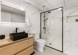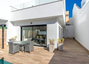 Los exteriores de estos adosados están pensados para maximizar el disfrute del clima mediterráneo. Cada propiedad cuenta con un jardín privado, perfecto para crear un oasis personal de relajación o para disfrutar de actividades al aire libre en familia. La terraza es otro de los espacios destacados, ideal para cenas al aire libre o simplemente para disfrutar de las vistas y el entorno. Además, cada adosado incluye un solárium, proporcionando un espacio adicional para tomar el sol en privacidad. La inclusión de una piscina privada en cada vivienda añade un toque de lujo, permitiendo refrescarse en los días más calurosos sin salir de casa.