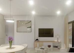 El interior de las viviendas está diseñado para maximizar el confort y la funcionalidad. Los apartamentos y las opciones en planta baja cuentan con suelos de gres porcelánico, que ofrecen durabilidad y un acabado moderno. La preinstalación de aire acondicionado asegura un ambiente agradable durante todo el año. Además, las viviendas están equipadas con videoportero y armarios empotrados, proporcionando seguridad y espacio de almacenamiento eficiente. La distribución incluye opciones de 1 o 2 dormitorios y 1 o 2 baños, adaptándose a diferentes estilos de vida.