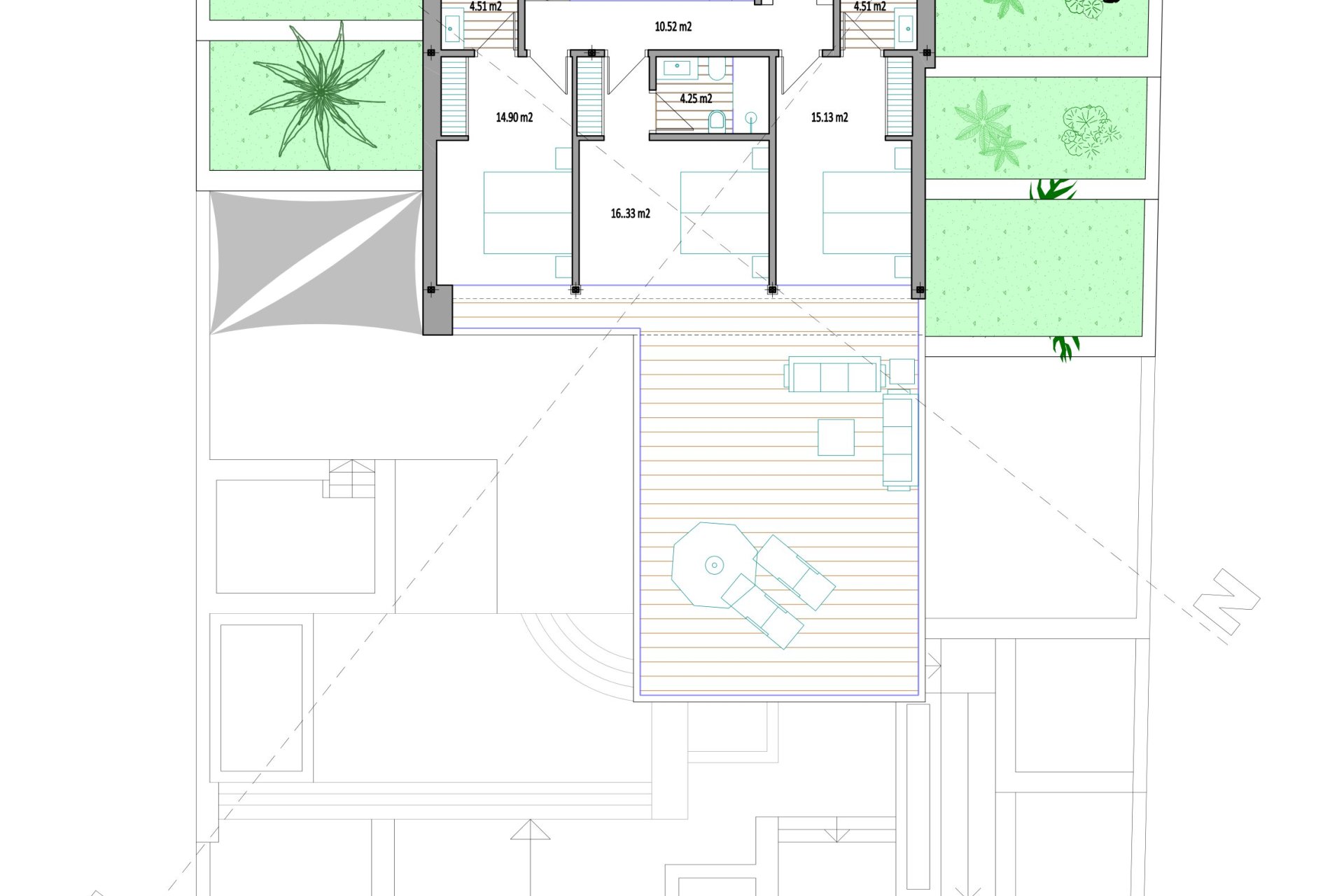 El exterior de estas villas en Calpe está concebido para disfrutar al máximo del entorno natural. Un jardín privado acompaña cada propiedad, ideal para momentos de relax o actividades al aire libre. La piscina privada es un elemento distintivo que añade lujo, permitiendo refrescarse durante los días soleados o disfrutar de una noche estrellada desde el agua. Las amplias terrazas invitan a cenas al aire libre con impresionantes vistas al mar, mientras que el solárium ofrece un rincón íntimo para tomar el sol rodeado de belleza natural.