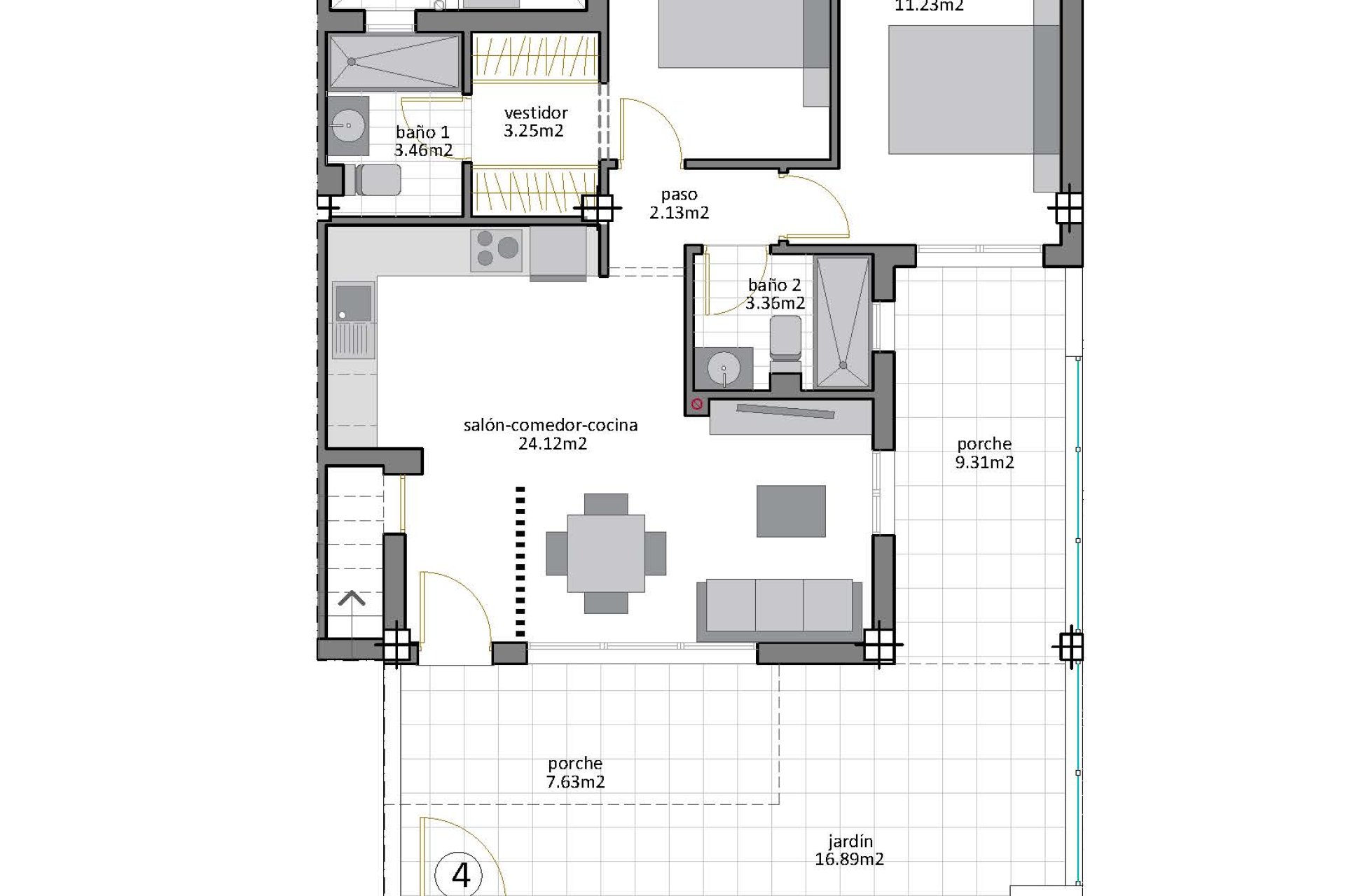 Disfruta del clima mediterráneo en los espacios exteriores diseñados para tu confort. Cada bungalow dispone de un jardín privado y una terraza donde contemplar las vistas al mar o simplemente relajarse. El solárium es perfecto para broncearse con total privacidad, mientras que las pérgolas aportan elegancia y sombra ideales para tus reuniones al aire libre.
