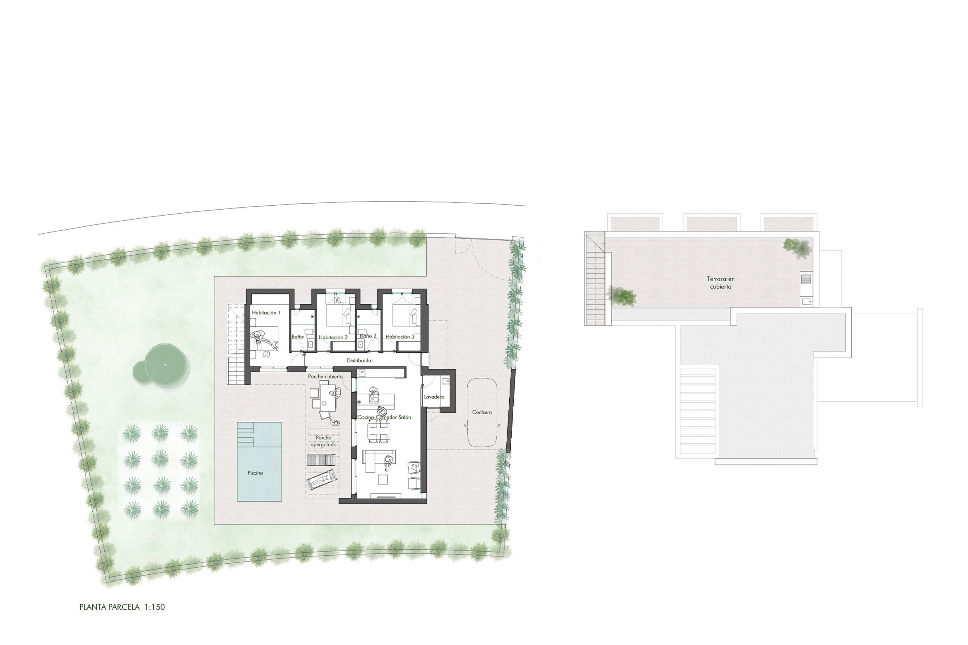 Descubre un oasis personal en cada vivienda con jardines privados que invitan a disfrutar de la naturaleza y el aire fresco. Las amplias terrazas son espacios perfectos para relajarse o celebrar reuniones al aire libre. Cada propiedad cuenta además con un solárium que ofrece vistas espectaculares y una piscina privada que añade lujo al hogar, permitiendo refrescarse sin salir de casa. El garaje privado asegura comodidad y protección para tus vehículos.