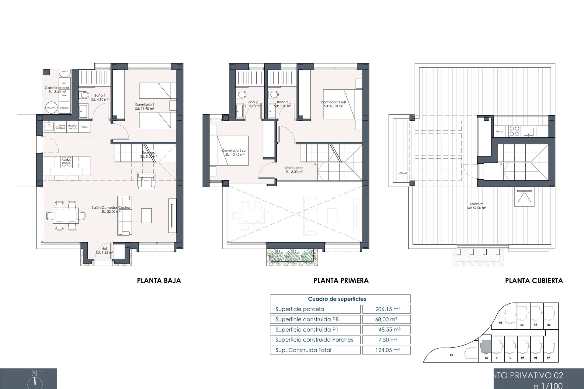 En la pintoresca localidad de Los Montesinos, Alicante Spain Properties presenta una exclusiva colección de 11 viviendas independientes. Situadas a solo 10 km del aeropuerto, estas propiedades son ideales para quienes desean un entorno apacible y cómodo. Con opciones que van desde 3 hasta 5 dormitorios y entre 3 y 4 baños, cada vivienda está meticulosamente diseñada para ofrecer el máximo confort y funcionalidad en un ambiente moderno.