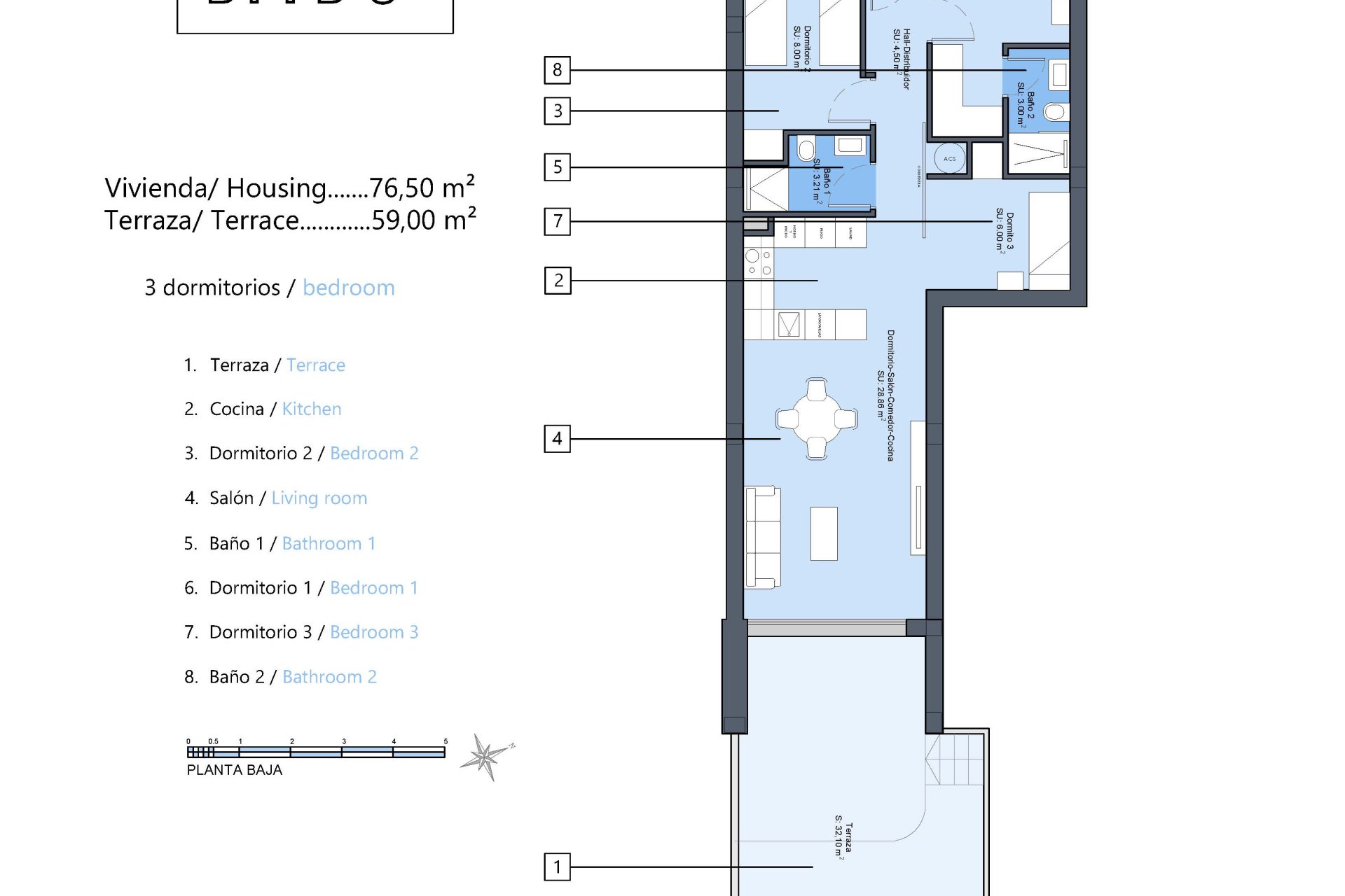 El interior de estos modernos bungalows destaca por su diseño detallado y práctico. Los suelos de gres porcelánico no solo aportan elegancia sino que también facilitan el mantenimiento diario. Las persianas eléctricas integradas permiten controlar fácilmente la iluminación natural, brindando modernidad y comodidad adicional. La cocina viene equipada con todos los electrodomésticos necesarios desde el primer día, haciendo la vida más sencilla. Los dormitorios incluyen armarios empotrados que ofrecen soluciones eficientes para mantener todo organizado.