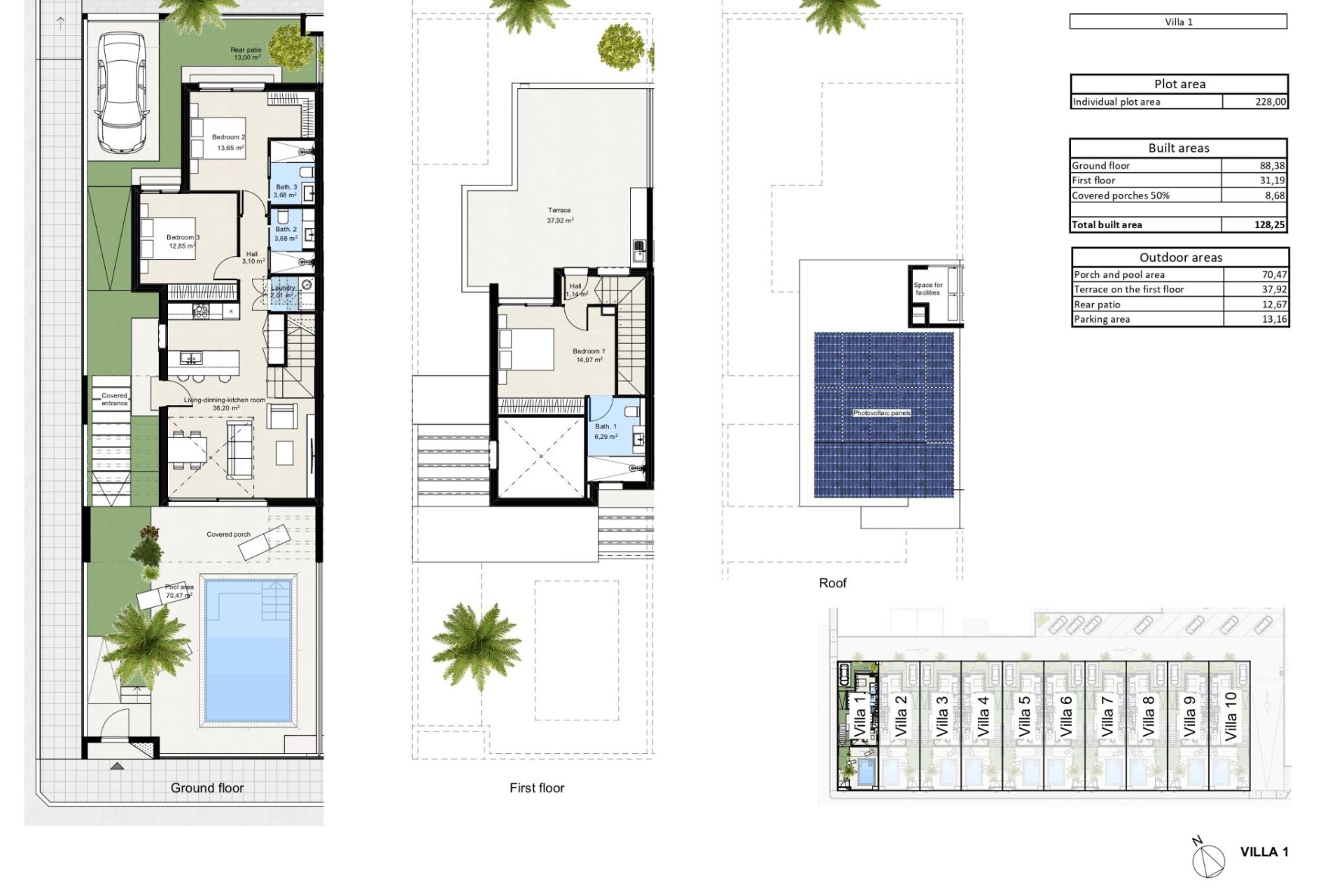 Estas casas independientes están meticulosamente diseñadas pensando en la comodidad moderna. Con tres dormitorios y tres baños, las propiedades están equipadas con armarios empotrados para un almacenamiento eficiente. La preinstalación de aire acondicionado garantiza un ambiente agradable durante todo el año, mientras que la cocina moderna equipada con electrodomésticos facilita las tareas diarias.