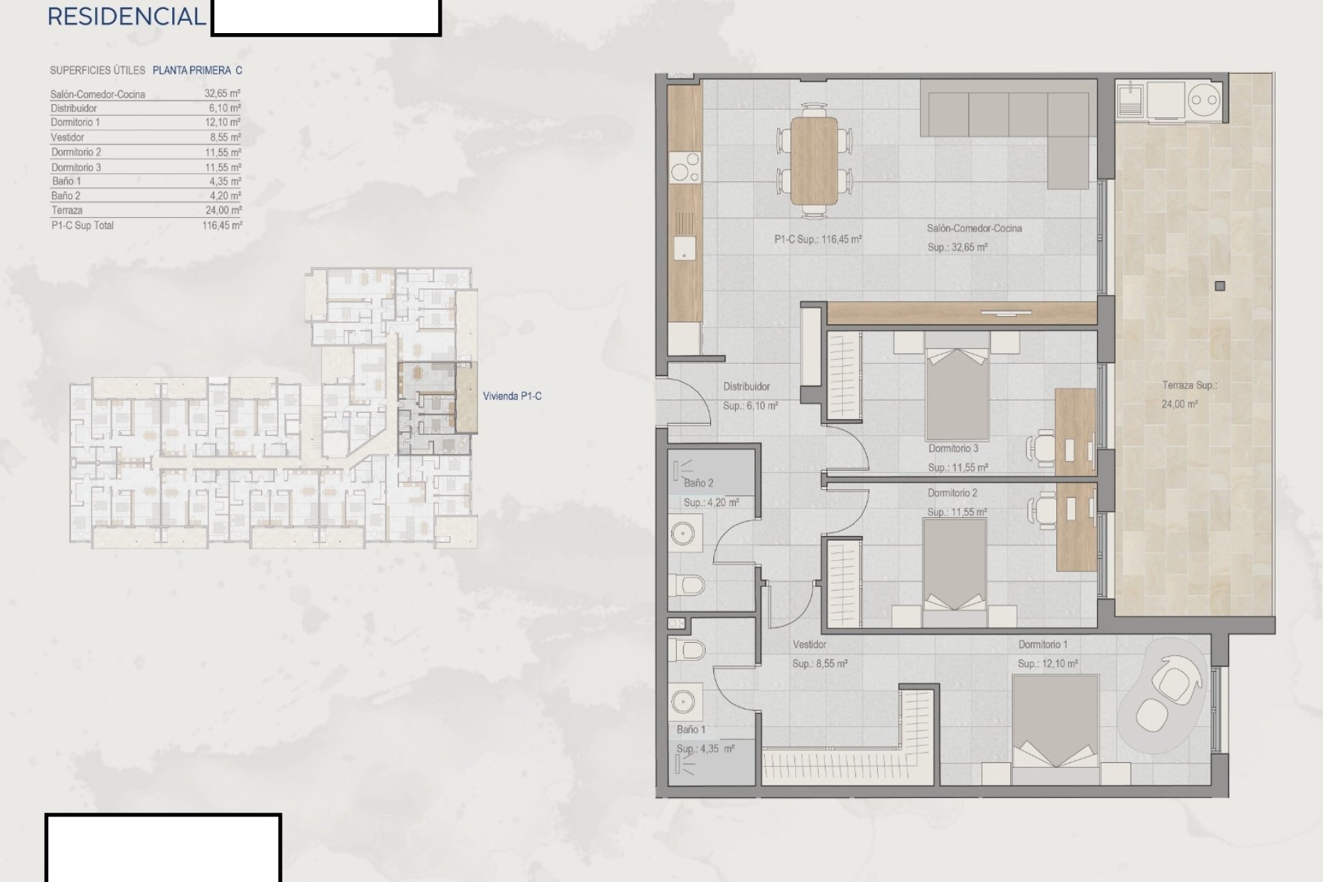Disfruta del clima mediterráneo en los exteriores de este residencial ubicado en Torre-Pacheco. Todas las propiedades incluyen terrazas ideales para relajarse y contemplar el paisaje circundante. Los áticos cuentan con solárium privado, ampliando las posibilidades de ocio al aire libre. Además, se proporciona acceso a garaje comunitario para asegurar comodidad y seguridad vehicular. La proximidad al aeropuerto, a tan solo 25 km, es un plus para aquellos que viajan frecuentemente.