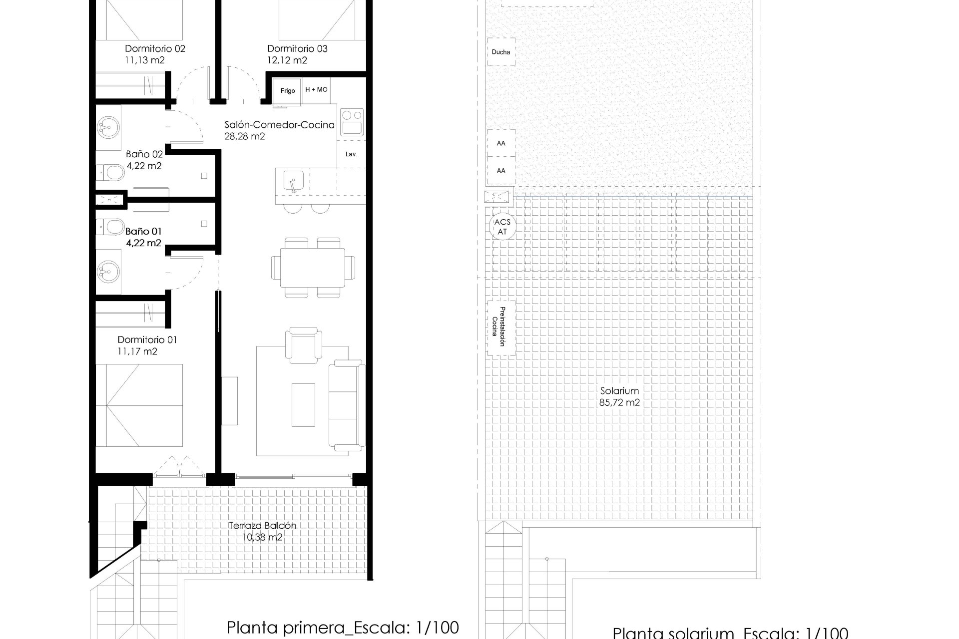 Los armarios empotrados optimizan el almacenamiento mientras que la preinstalación de aire acondicionado asegura confort climático durante todo el año. Las terrazas privadas y los solariums amplían los espacios interiores hacia áreas exteriores acogedoras.