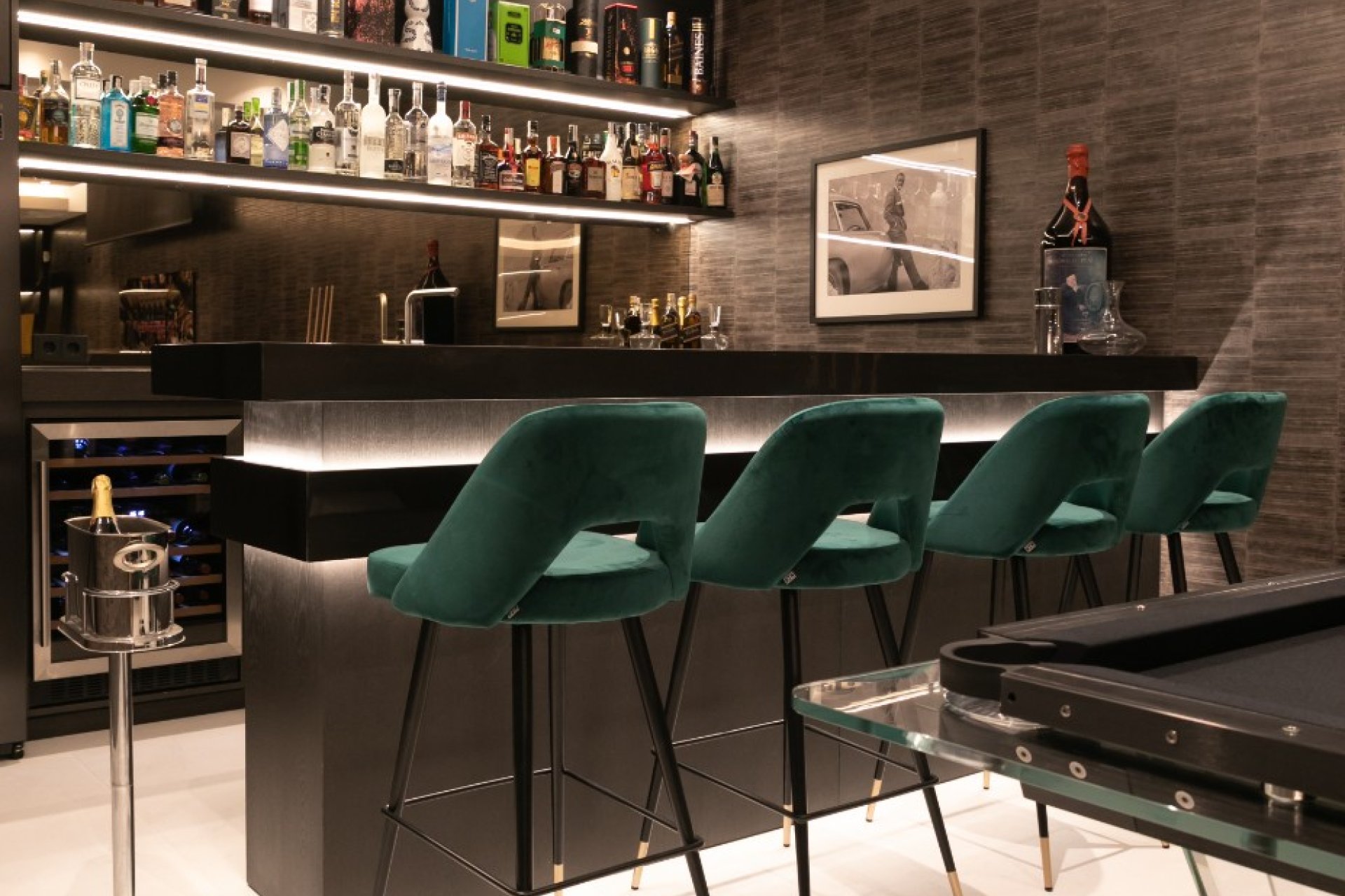 Tiene 4 escobas en suite y un baño de invitados separado. Además de todo esto, en el nivel inferior tienes mucho más: instalación de bar completamente equipada, una mesa de billar vintage muy especial y sala de cine en casa también. Se puede acceder a la residencia tanto por la planta principal como por la planta baja, así como desde el jardín.