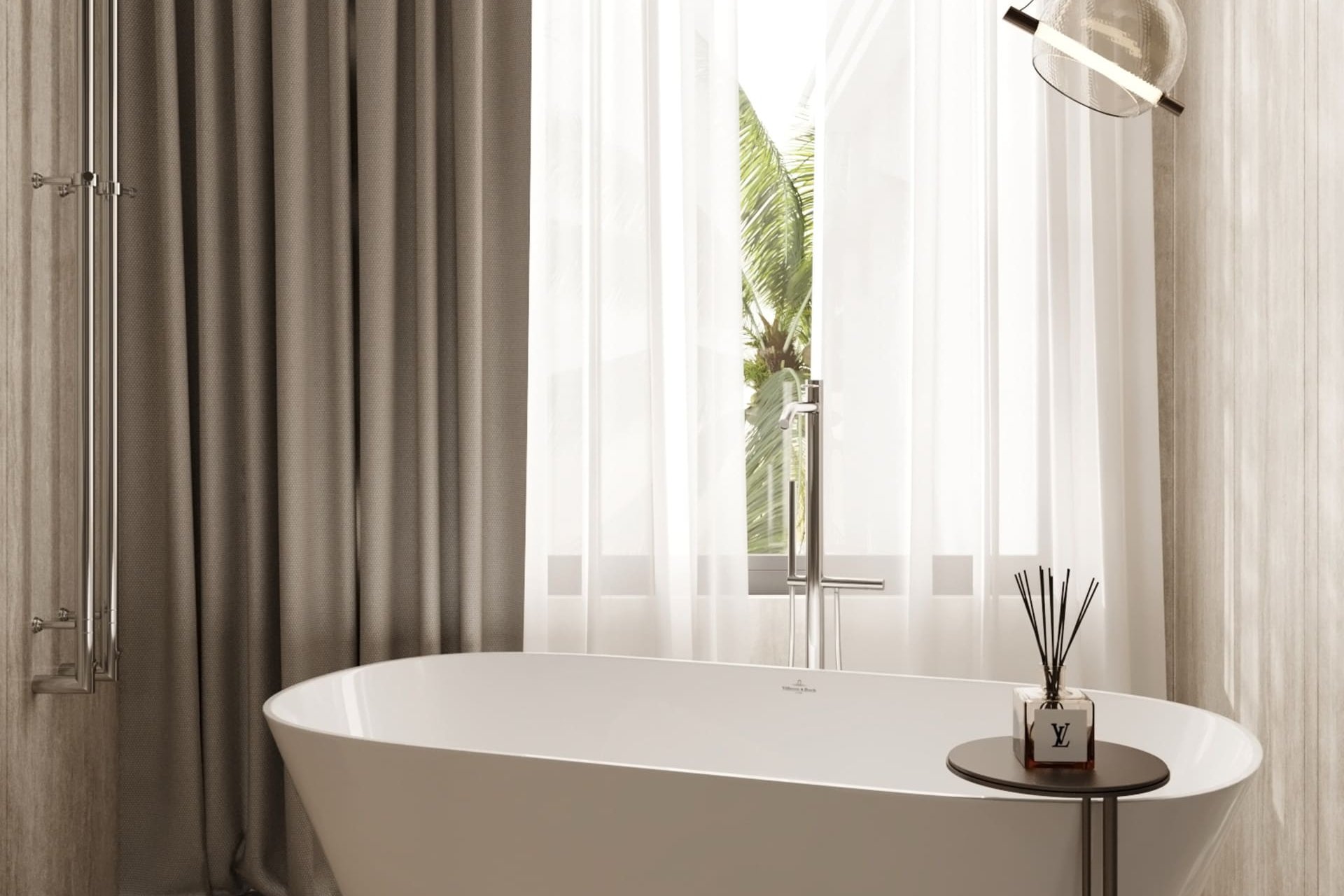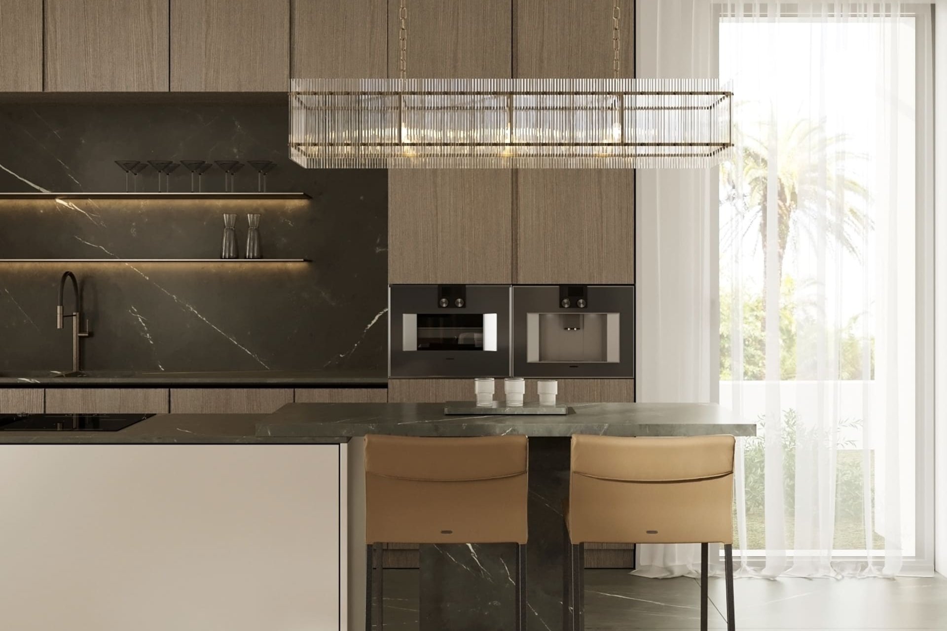 La villa presenta un interior meticulosamente planificado que equilibra confort y funcionalidad. Con seis dormitorios y siete baños, cada rincón está pensado para ofrecer privacidad y lujo absoluto. Los suelos de gres porcelánico aportan modernidad y distinción a cada estancia. Un sistema de domótica avanzada permite controlar diferentes aspectos del hogar con facilidad, complementado por un videoportero que garantiza seguridad adicional. El garaje privado ofrece una entrada segura para los vehículos de los residentes.