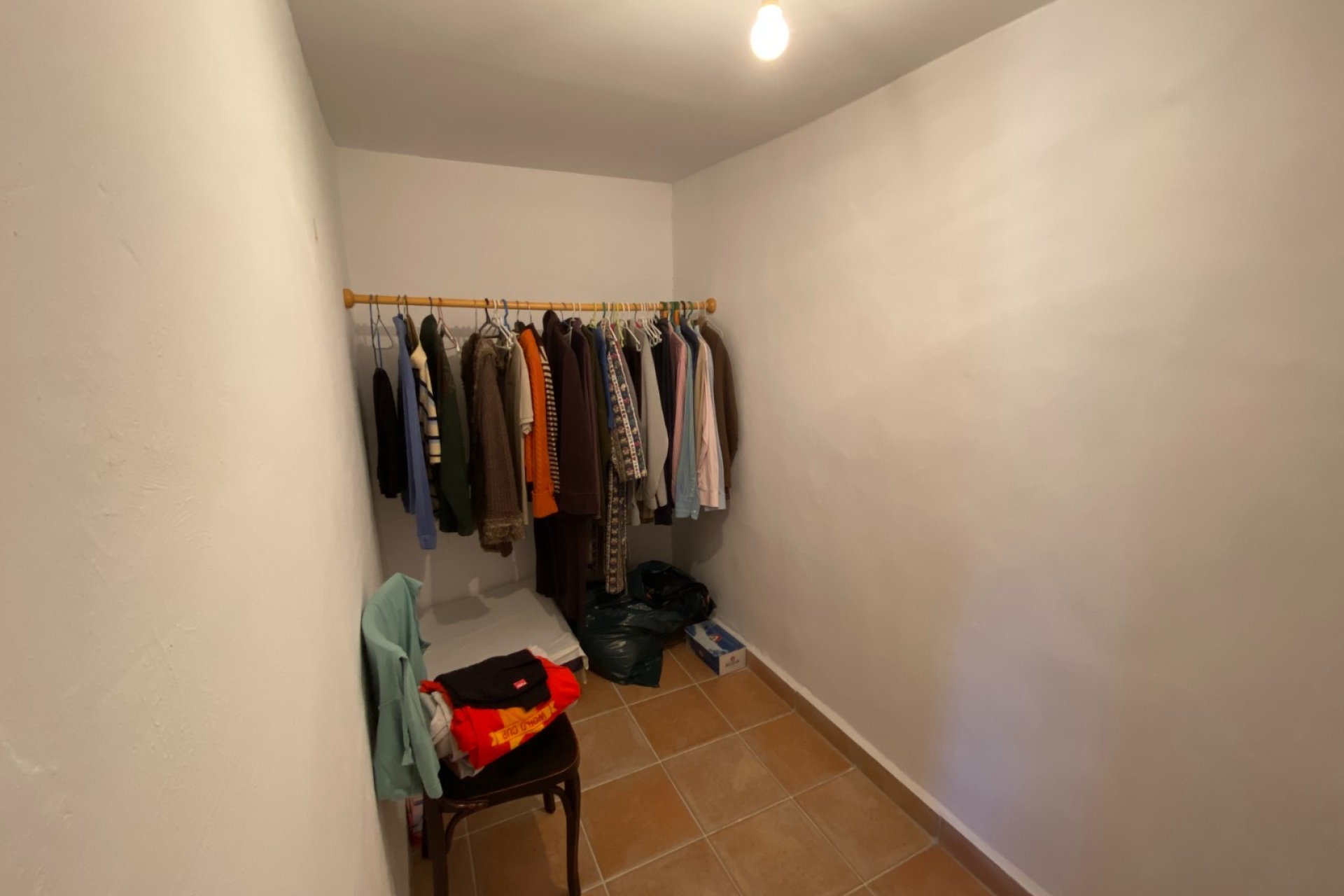 Desde la cocina/comedor puede salir a la parte trasera, que es un enorme patio amurallado con dependencias para almacenamiento o para un taller. Al fondo hay un acceso directo al terreno donde se encuentra una balsa.