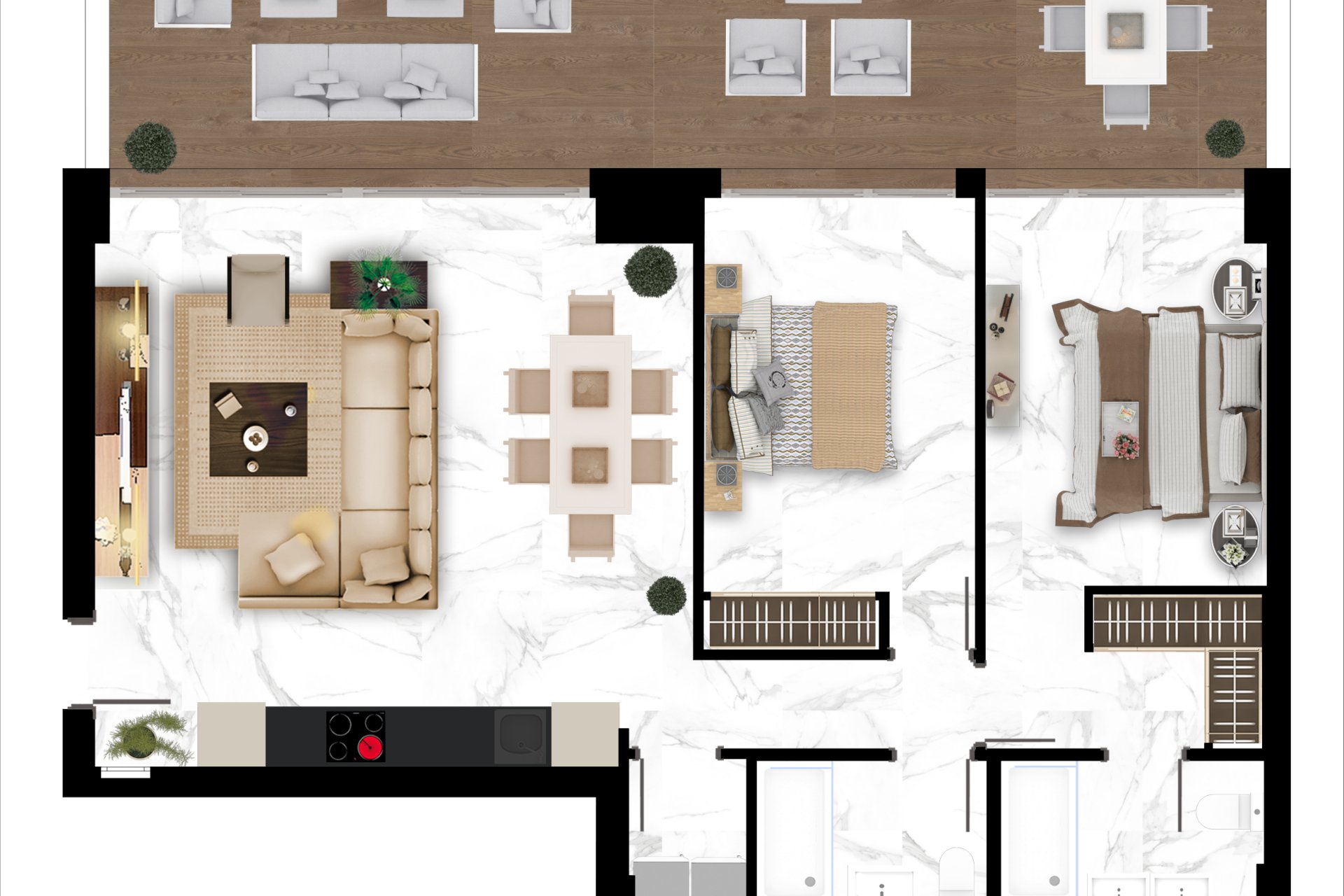 Este complejo residencial en Marbella ofrece viviendas equipadas con acabados de primera calidad pensados para garantizar el máximo bienestar. Los suelos de gres porcelánico añaden un toque distintivo y resistente al desgaste diario. El confort está asegurado gracias a las persianas eléctricas y aire acondicionado disponibles todo el año. Las cocinas, completamente dotadas con electrodomésticos modernos, facilitan las tareas diarias mientras los armarios empotrados proporcionan generoso almacenamiento manteniendo cada habitación organizada. Las propiedades están disponibles en configuraciones versátiles: desde opciones con 2 hasta 4 dormitorios y baños que van de 2 a 3 unidades.