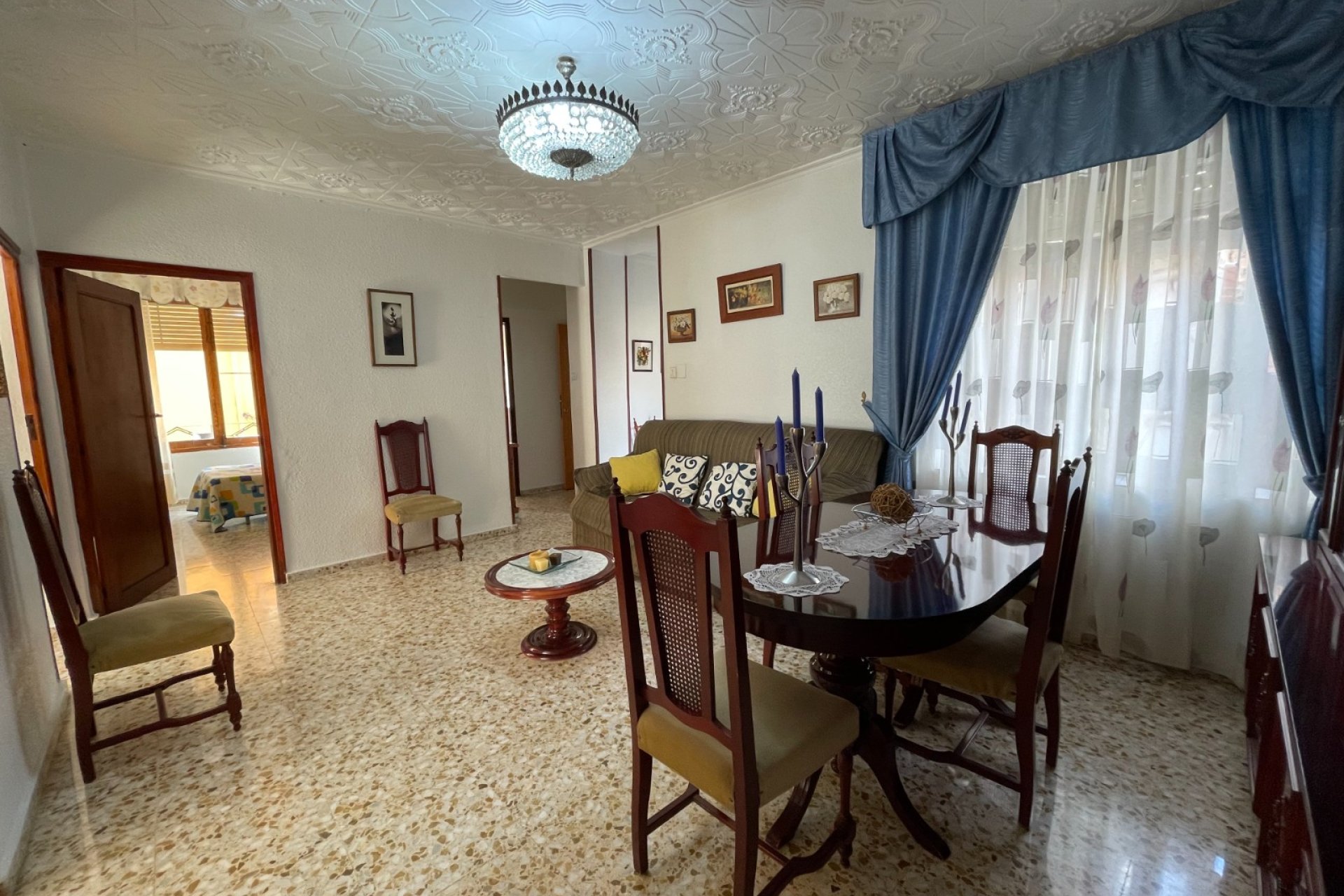 Amplio primer piso, en el centro de la ciudad, en excelentes condiciones de limpieza y mantenimiento, completamente amueblado y listo para mudarse de inmediato. El edificio principal se divide en solo tres pisos privados, muy cerca de todos los servicios en el hermoso centro del pueblo de Ricote. La entrada conduce a un pasillo, que lleva a un gran salón espacioso con comedor, que conduce a una cocina totalmente equipada con electrodomésticos incluidos y un salón adicional que tiene una esquina alicatada y un tubo de chimenea de metal ya instalado si el nuevo propietario desea instalar una estufa de leña, etc. y, además, un gran lavadero con lavadora, fregadero y calentador de agua eléctrico instalado. Un dormitorio extra grande con armarios empotrados y un encantador balcón estilo Julieta, dos dormitorios dobles adicionales (uno con armarios empotrados) y un dormitorio individual, hacen de esta una propiedad de tamaño familiar muy espaciosa. Totalmente amueblado, red de agua y red eléctrica conectada en esta propiedad