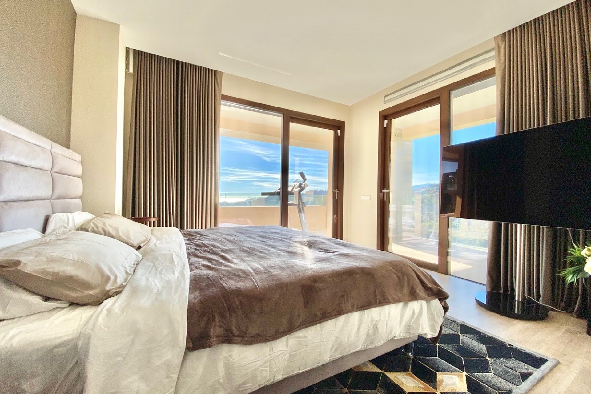 Lujoso y amplio apartamento de 4 dormitorios en Olivos, La Quinta, Benahavís. Esta propiedad única combina dos apartamentos en un solo espacio, ofreciendo 4 dormitorios, 4 baños y una gran terraza con impresionantes vistas panorámicas al mar, campos de golf, montañas y La Concha. La orientación sur-suroeste asegura abundante luz natural durante todo el día.