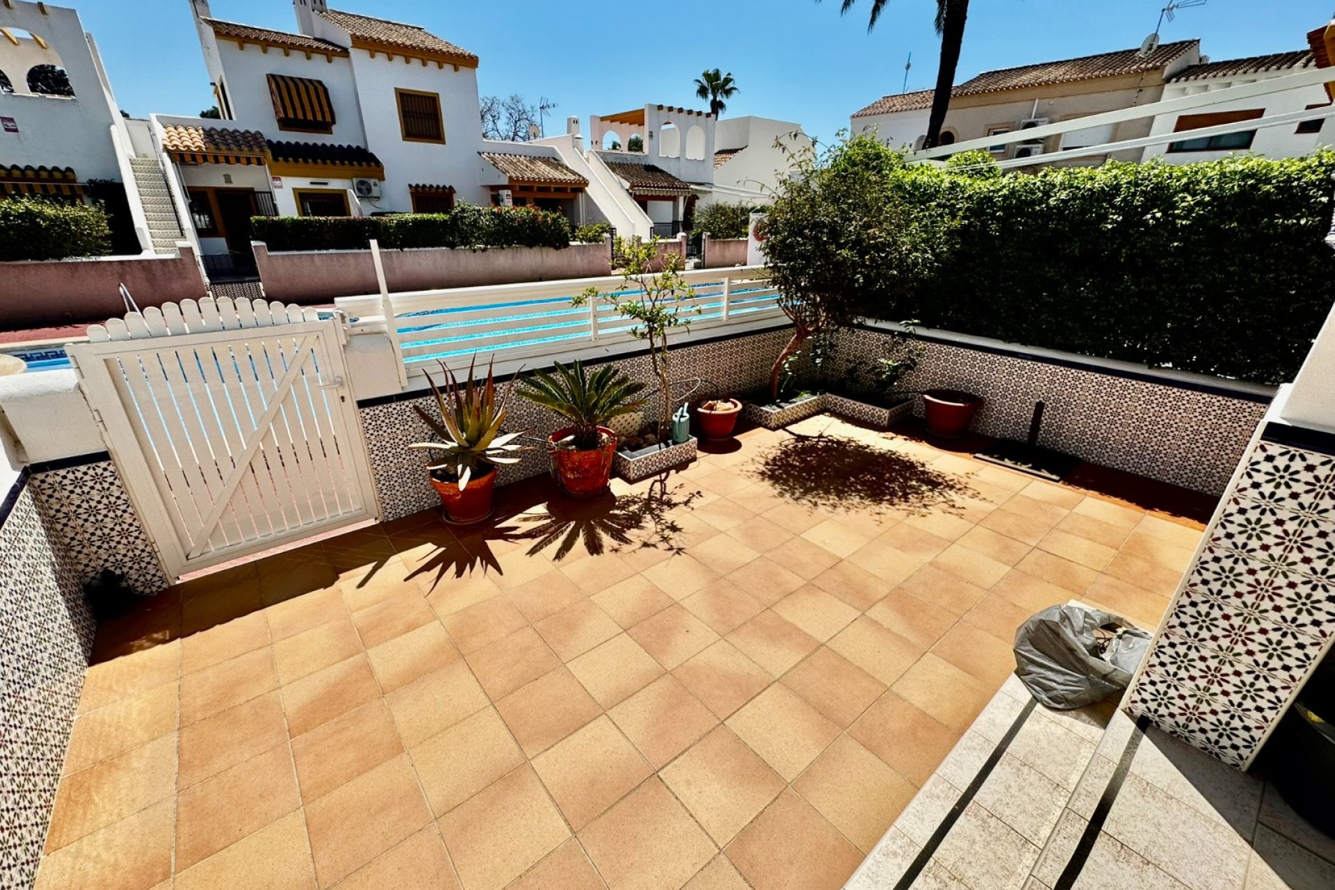 Esta propiedad de estilo español se encuentra en una pequeña comunidad y cuenta con una gran piscina comunitaria. La propiedad cuenta con 4 dormitorios, 2 en la planta baja y 2 en la planta alta, y 2 terrazas en la planta baja, una orientada al oeste y la otra al este, con vistas a la piscina comunitaria. La propiedad cuenta con ventiladores de techo y chimenea, y está en muy buen estado.
