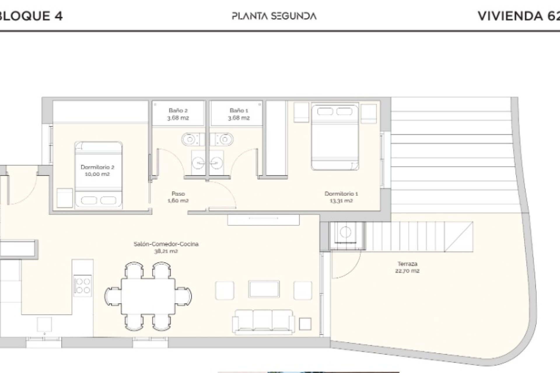 El diseño interior de estas viviendas está enfocado en brindar confort contemporáneo. Tanto los apartamentos como los bajos y áticos tienen suelos de gres porcelánico que añaden elegancia y son fáciles de limpiar. Todas las unidades están equipadas con aire acondicionado para asegurar una temperatura agradable durante todo el año. Los armarios empotrados ofrecen amplio espacio para almacenamiento personal mientras que el videoportero proporciona seguridad adicional. La distribución incluye dos dormitorios y dos baños, adaptándose perfectamente a diversas necesidades familiares.