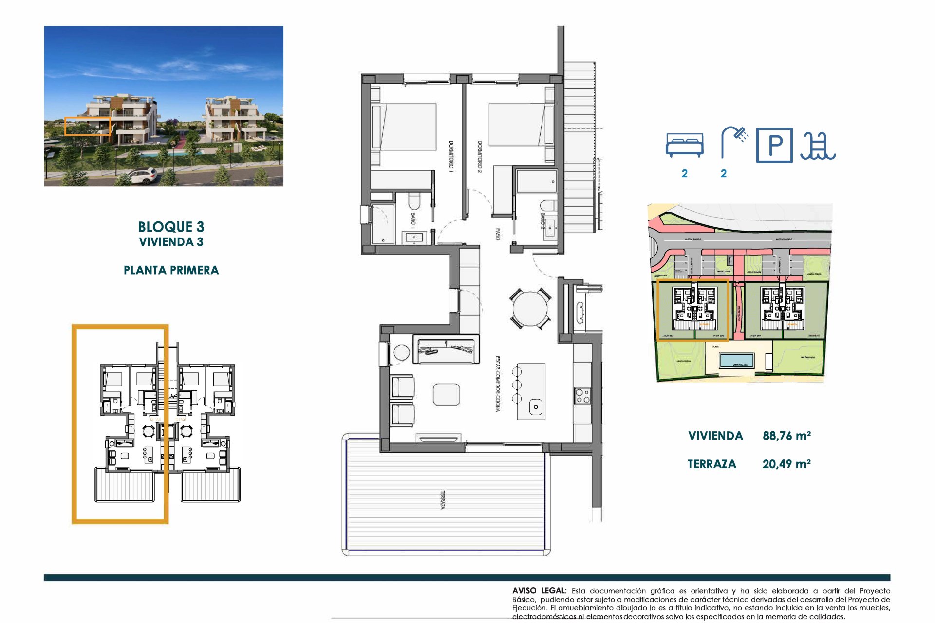 Las viviendas han sido diseñadas pensando en la comodidad y el estilo contemporáneo. Los suelos de gres porcelánico no solo aportan modernidad sino también facilidad en su mantenimiento. Equipadas con videoportero, estas propiedades garantizan seguridad y confort. Los armarios empotrados optimizan el espacio disponible manteniendo todo organizado. La preinstalación de aire acondicionado permite disfrutar de una temperatura agradable durante todo el año. Con dos dormitorios y dos baños, cada unidad ofrece un espacio acogedor tanto para parejas como familias.