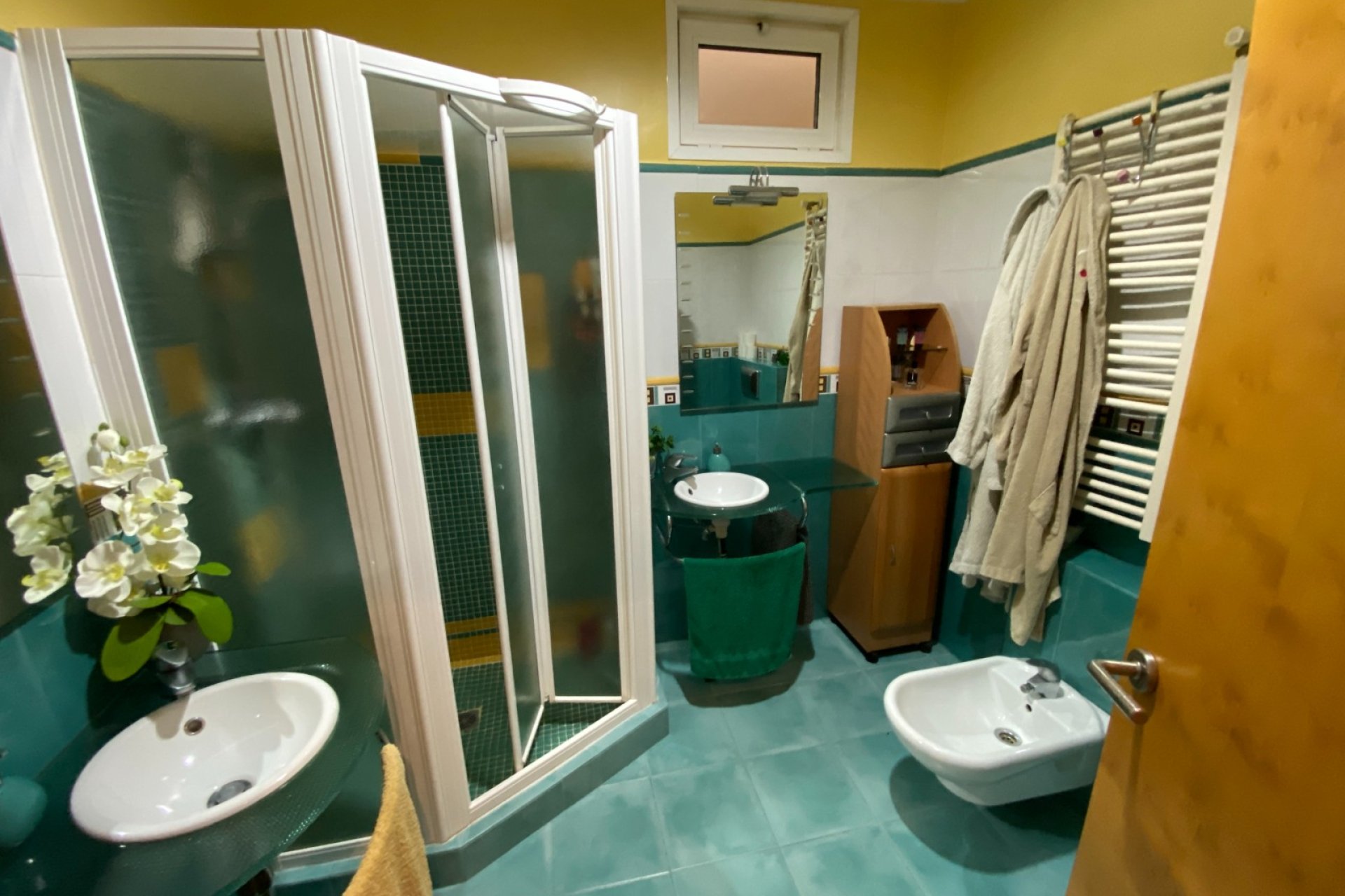 Al entrar a la villa por la puerta principal hay un pequeño y encantador pasillo que conduce a la izquierda a un invernadero que es donde los propietarios pasan la mayor parte del tiempo ya que, con las ventanas abiertas en verano, se puede sentir la brisa de las montañas y que También capta el sol en invierno.
