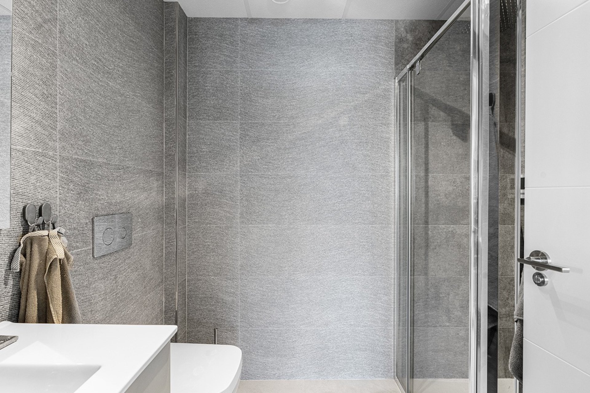 Costa Blanca Eiendom presenta esta magnífica propiedad situada en una de las zonas más cotizadas de Gran Alacant, a tan solo 1 km de la playa del Carabassí. Se trata de un elegante ático dentro de un complejo residencial consolidado, que combina a la perfección confort, diseño contemporáneo y una ubicación privilegiada. Con una superficie construida de 62,70 m², la vivienda ofrece una distribución inteligente que maximiza cada rincón. Dispone de 2 amplios dormitorios con armarios empotrados, ambos con excelente iluminación natural, y 2 baños (uno completo y un aseo), con acabados de alta calidad y estilo moderno. El salón-comedor destaca por su amplitud y luminosidad, gracias a sus grandes ventanales que aportan abundante luz natural y una agradable sensación de espacio abierto. La cocina americana, moderna y funcional, está totalmente integrada en la zona social, ofreciendo una experiencia abierta y fluida, ideal para quienes valoran el diseño actual y la practicidad. La vivienda cuenta con aire acondicionado centralizado, garantizando confort durante todo el año. Uno de los mayores atractivos de esta propiedad es su espectacular solárium privado de 57 m², ubicado en la azotea de la vivienda. Este espacio, cuidadosamente acondicionado, ofrece un entorno exclusivo con jacuzzi, barbacoa, tumbonas, ducha, lavaplatos con almacenaje y una mesa para comer al aire libre, todo ello con vistas excepcionales al mar que invitan a disfrutar del entorno natural y del cielo mediterráneo. Esta vivienda forma parte de un residencial privado con piscina comunitaria, zonas verdes y excelente mantenimiento, lo que garantiza un entorno tranquilo y seguro durante todo el año. Además, la propiedad incluye una plaza de garaje y trastero subterráneo, con acceso cómodo y directo. Ubicada a pocos minutos de todos los servicios, restaurantes, supermercados y transporte público, y con excelente conexión con el aeropuerto internacional de Alicante (a solo 10 minutos), esta propiedad es ideal tanto como vivienda habitual, residencia vacacional o inversión para alquiler turístico. Póngase en contacto con nosotros para obtener más información, o únase a uno de nuestros tours sin compromiso para visitar este maravilloso proyecto.