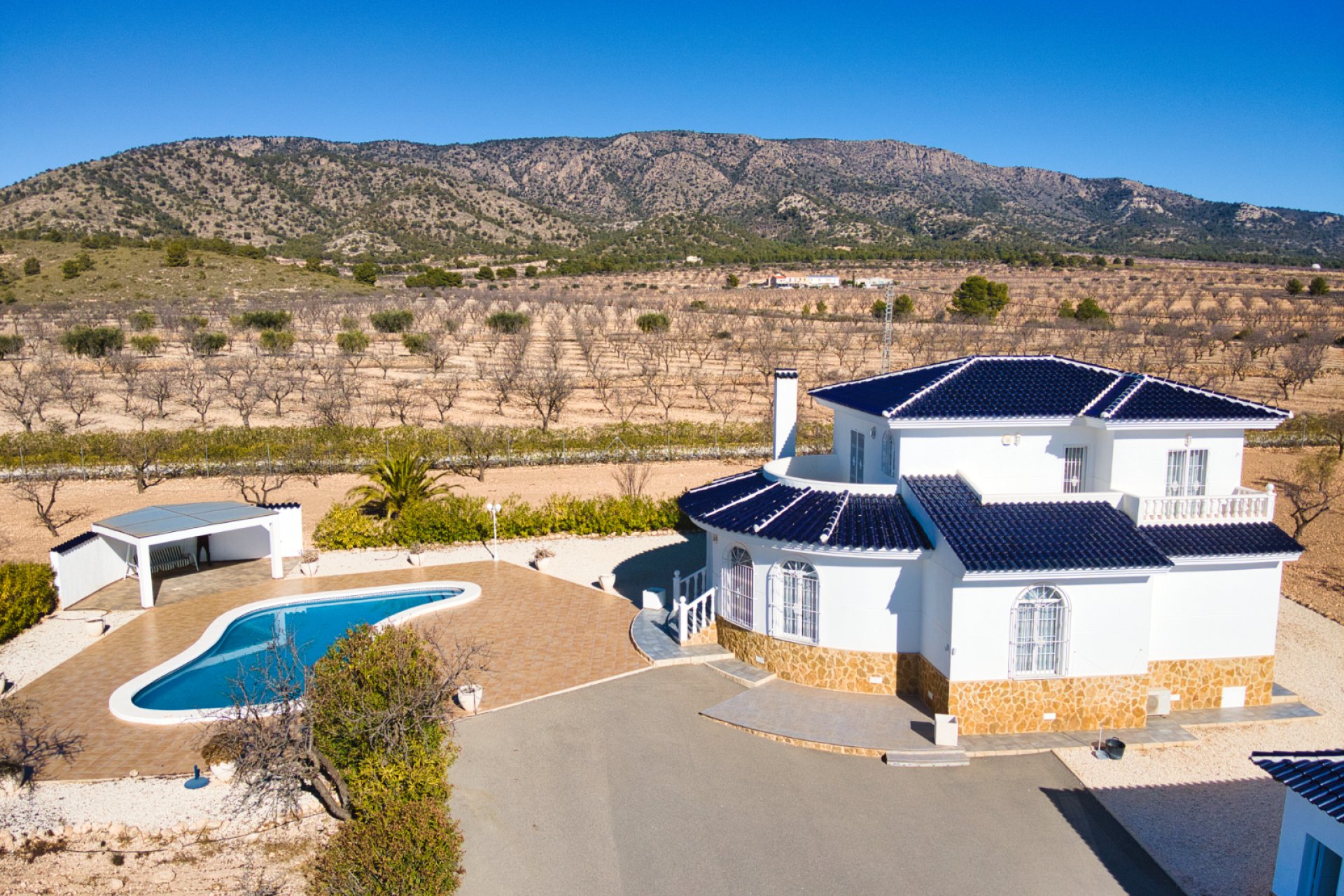 Live Spain for Life se complace en ofrecerle esta impresionante villa de campo de segunda mano como nueva enclavada en el pintoresco campo de Pinoso. Esta hermosa e impresionante propiedad tiene un gran salón de planta abierta en la planta baja con una escalera de mármol italiano muy atractiva también con chimenea de leña, calefacción central de gasoil y aire acondicionado. Hermosa cocina y comedor, con muchos ventanales que dejan entrar mucha luz y vistas al jardín y hermosas cadenas montañosas. También se beneficia de un trastero debajo de las escaleras, la propiedad tiene 2 dormitorios en la planta baja y un baño, además de 2 dormitorios más en la planta superior, ambos con baño privado y áreas de terraza para disfrutar del hermoso paisaje. Todos los dormitorios tienen armarios empotrados. La propiedad también se beneficia de un gran garaje doble que combina con el diseño de la casa con un piso de baldosas y un lavadero donde encontrará la bomba de la piscina, la lavadora y la caldera con tanque de aceite para la calefacción central y el agua caliente. La parcela está llena de almendros que un agricultor local cuida a cambio de la mayor parte de la cosecha. La propiedad se beneficia de puertas eléctricas y alarma de seguridad instaladas. Agua de red (que es agrícola, por lo que es realmente barata, no para beber, pero todo lo demás está bien) más un tanque de respaldo de 5000 l con bomba y electricidad de red. Pinoso (también conocido como Pinos) está escondido entre las montañas, justo en la frontera entre Murcia y Alicante y ofrece todas las comodidades e instalaciones que necesita con restaurantes, tiendas, supermercados y un centro médico. Es un pueblo tradicional ubicado a unos 40 minutos tierra adentro desde el aeropuerto de Alicante y a unos 10 minutos en auto de Yecla. Un pueblo tradicional que se encuentra ubicado en el campo montañoso a unos 56 km de Alicante. Este pueblo es famoso por su producción de vinos finos, sal de roca y mármol. Pinoso tiene una población de 7.300 y un área municipal de 126 km2. Recientemente ha experimentado un crecimiento en el turismo. Hay 10 entidades locales menores dentro del término municipal: El Rodriguillo, Culebró, Les Enzebres, Úbeda, Cases d'Ibáñez o Les Casetes, Lel, Cases del Pi, El Paredó, La Cavallussa y Tresfonts. En Live Spain for Life nos enorgullecemos del hecho de que después de unas pocas charlas o correos electrónicos con usted, con nuestra experiencia normalmente podemos determinar exactamente lo que está buscando y mostrarle esas propiedades. Estamos orgullosos de ser una empresa familiar que vive aquí en la zona y se ha especializado en propiedades de campo, reventas y nuevas construcciones durante casi 20 años. Nuestra cartera es amplia y tratamos de ofrecerle solo propiedades que tenemos directamente de los propios propietarios. Creemos que somos diferentes a muchos otros agentes inmobiliarios porque también mantenemos todo lo más actualizado posible y solo anunciamos propiedades que sabemos que están actuales y disponibles. La información es solo una guía y NO constituye los hechos y detalles completos de las propiedades que tenemos en oferta para la venta. Depende de los compradores y de su equipo legal determinar la situación legal y confirmar los detalles de cualquier propiedad que se ofrezca a la venta antes de la finalización de la misma. Te contamos lo que realmente necesitas saber al comprar una propiedad en la Costa Blanca Sur, España