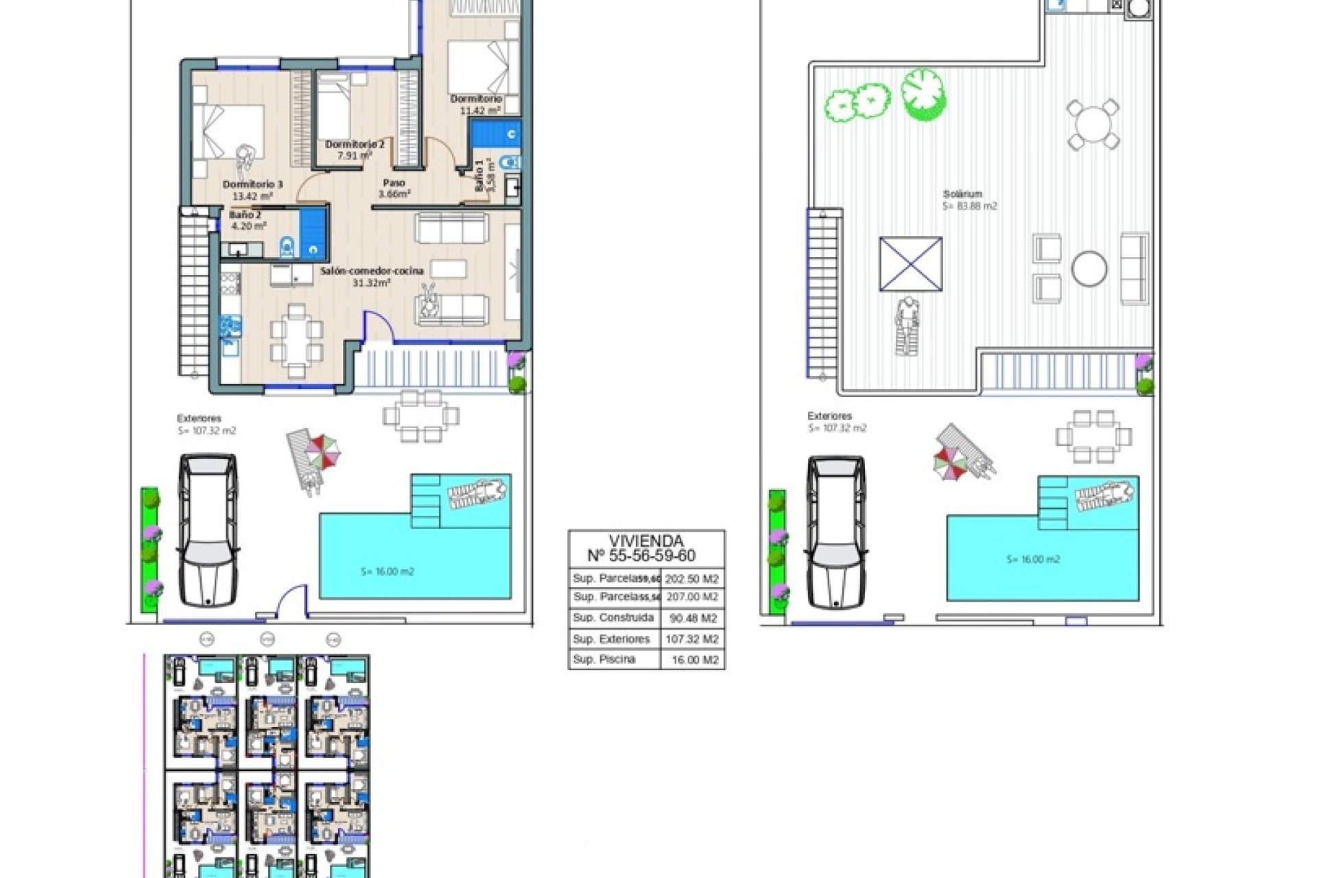 El diseño exterior de cada vivienda incluye un encantador jardín privado donde disfrutar del clima mediterráneo es un placer diario. Las terrazas y soláriums ofrecen espacios ideales para el ocio al aire libre, mientras que la piscina privada en cada propiedad añade un toque distintivo de lujo, proporcionando momentos únicos de relax sin salir del hogar.