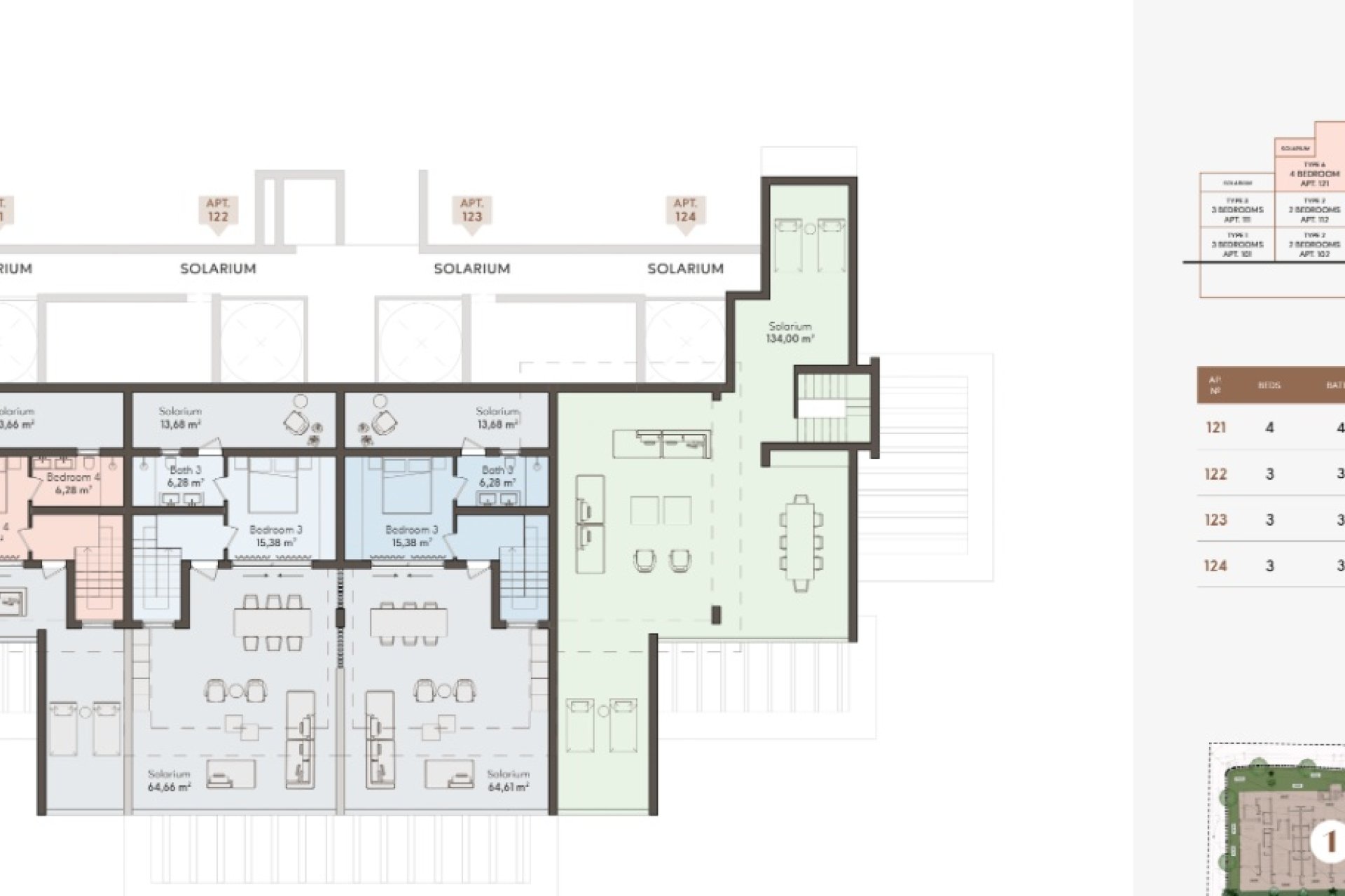 Los exteriores están concebidos para aprovechar al máximo el clima mediterráneo, contando con terrazas privadas ideales para contemplar el mar y disfrutar del aire libre. Algunas viviendas disponen de solárium, proporcionando un espacio adicional para relajarse o recibir invitados. Además, los jardines privados son perfectos para crear tu propio oasis personal donde desconectar y realizar actividades al aire libre. El uso de materiales duraderos como el suelo porcelánico asegura elegancia y resistencia.