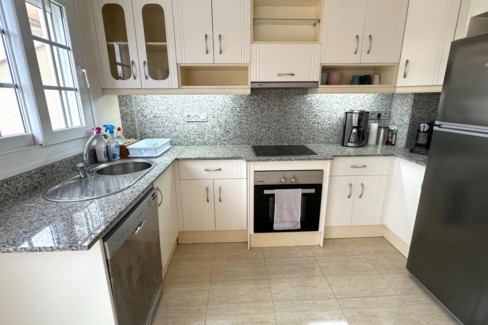 Se ofrece este amplio apartamento de dos plantas situado en una de las zonas más tranquilas y cuidadas de El Raso. La vivienda destaca por su distribución funcional, amplias terrazas y preciosas vistas a la piscina y a la laguna salada. Distribución: Planta baja: Amplio salón Cocina independiente Dos dormitorios Baño Gran terraza con vistas a la piscina Trastero Planta alta: Dormitorio Baño Gran terraza con vistas a la laguna salada Lavandería Trastero adicional La vivienda está en excelente estado y no necesita reforma. Aire acondicionado en todas las estancias. Plaza de aparcamiento incluida. Ideal para residencia permanente o vacaciones.