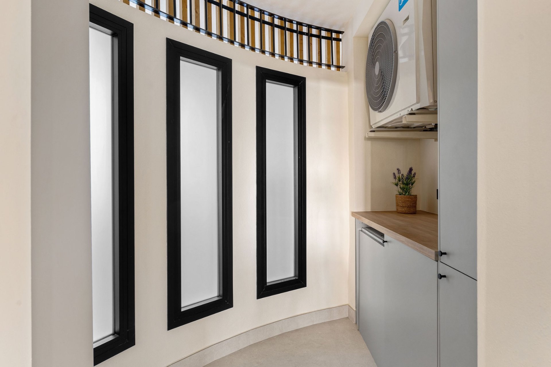 El apartamento cuenta con tres amplios dormitorios, dos de ellos con baño en suite, además de un baño adicional y un aseo de cortesía. Un área de lavandería y un garaje privado añaden practicidad, y el balcón orientado al sur, amueblado con estilo y equipado con barbacoa, ofrece un espacio ideal para relajarse o socializar.