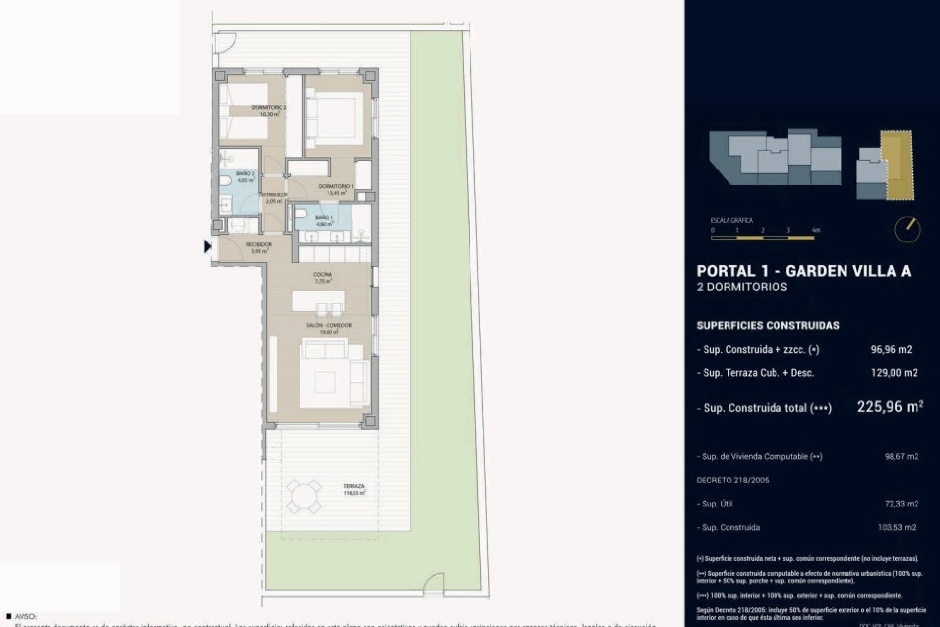 El interior de estos adosados ha sido concebido pensando en el confort máximo y la practicidad diaria. Cada hogar dispone de dos dormitorios bien distribuidos junto con dos baños completos, creando un ambiente acogedor ideal para el día a día. Entre sus características destacan el aire acondicionado que asegura frescura durante todo el año y los armarios empotrados que optimizan cada espacio disponible. El diseño aprovecha al máximo la entrada de luz natural, ofreciendo espacios luminosos e invitadores que reflejan un compromiso claro con la calidad.