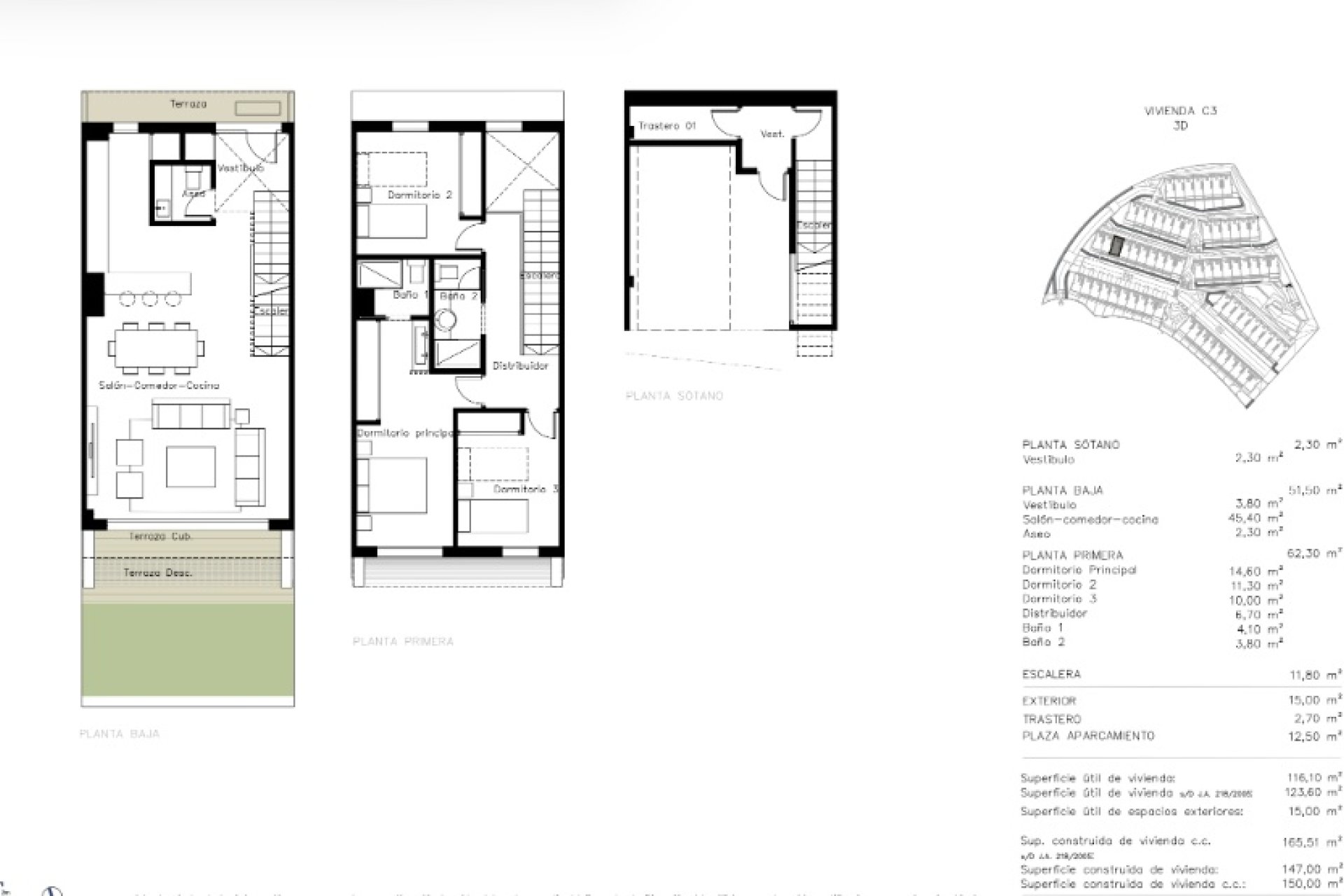 El diseño interior ofrece confort sin igual con opciones entre 3 y 4 dormitorios adaptándose a diversas necesidades familiares. Los baños modernos garantizan estilo y comodidad, mientras los elegantes suelos de gres porcelánico facilitan su mantenimiento. Las cocinas están equipadas con electrodomésticos premium para simplificar las tareas diarias, complementadas por armarios empotrados que optimizan el almacenamiento manteniendo todo organizado. Además, contarás con garaje privado para mayor seguridad y conveniencia.