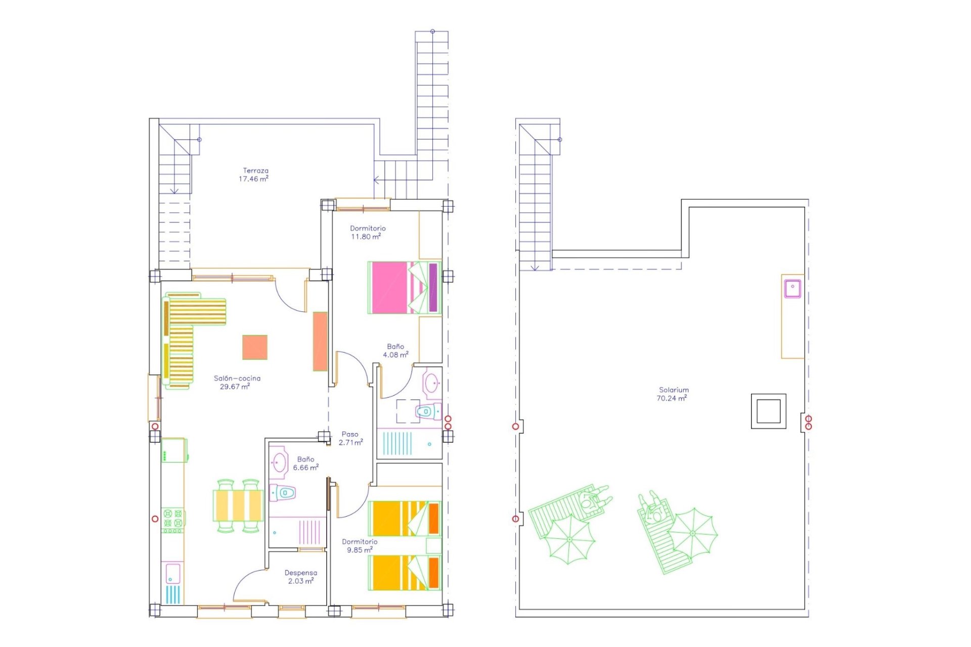 Disfruta del clima mediterráneo en estos magníficos bungalows situados en San Javier. Cada propiedad cuenta con un jardín privado que invita al relax o a compartir momentos inolvidables con amigos y familiares. Las terrazas son perfectas para tomar el sol o cenar al aire libre, mientras que el solárium ofrece vistas espectaculares y un espacio versátil para diversas actividades bajo el sol.