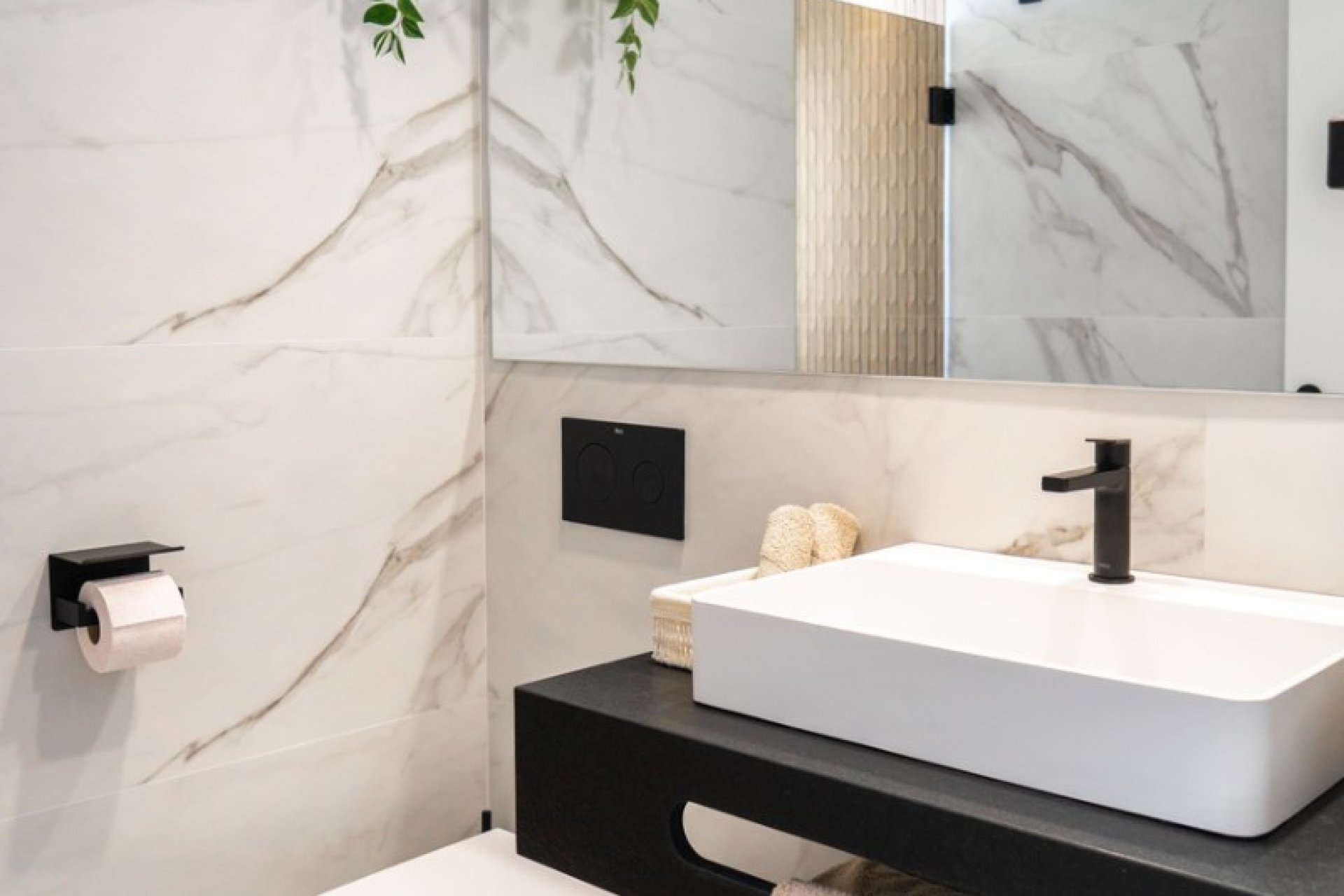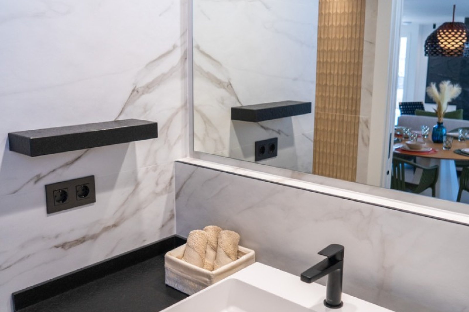 El interior destaca por su estilo elegante y funcional: una cocina italiana de diseño totalmente equipada con electrodomésticos, tres dormitorios y tres baños completos (uno en suite), además de aire acondicionado por conductos y calefacción de calor azul en todas las estancias. Los materiales de alta gama, como las ventanas Schüco y la puerta de seguridad con apertura mediante código, garantizan la máxima calidad y confort.