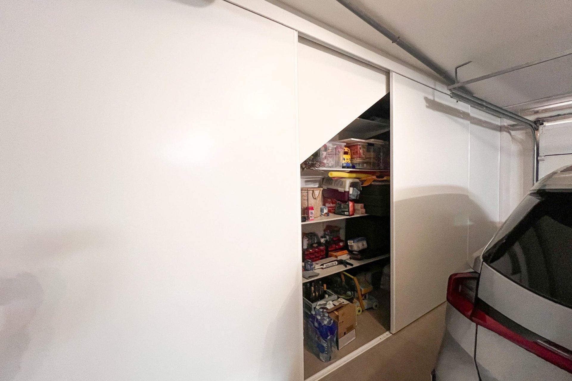 El nivel inferior, con acceso directo e independiente desde la vía privada posterior, alberga un garaje privado para dos vehículos que va mucho más allá de una simple zona de aparcamiento. Este espacio cuenta con amplios armarios de almacenaje, lavadero y una estancia con luz natural y ventana al exterior, ideal como oficina, zona de trabajo o para adaptarla a cualquier otro uso según las necesidades del nuevo propietario.