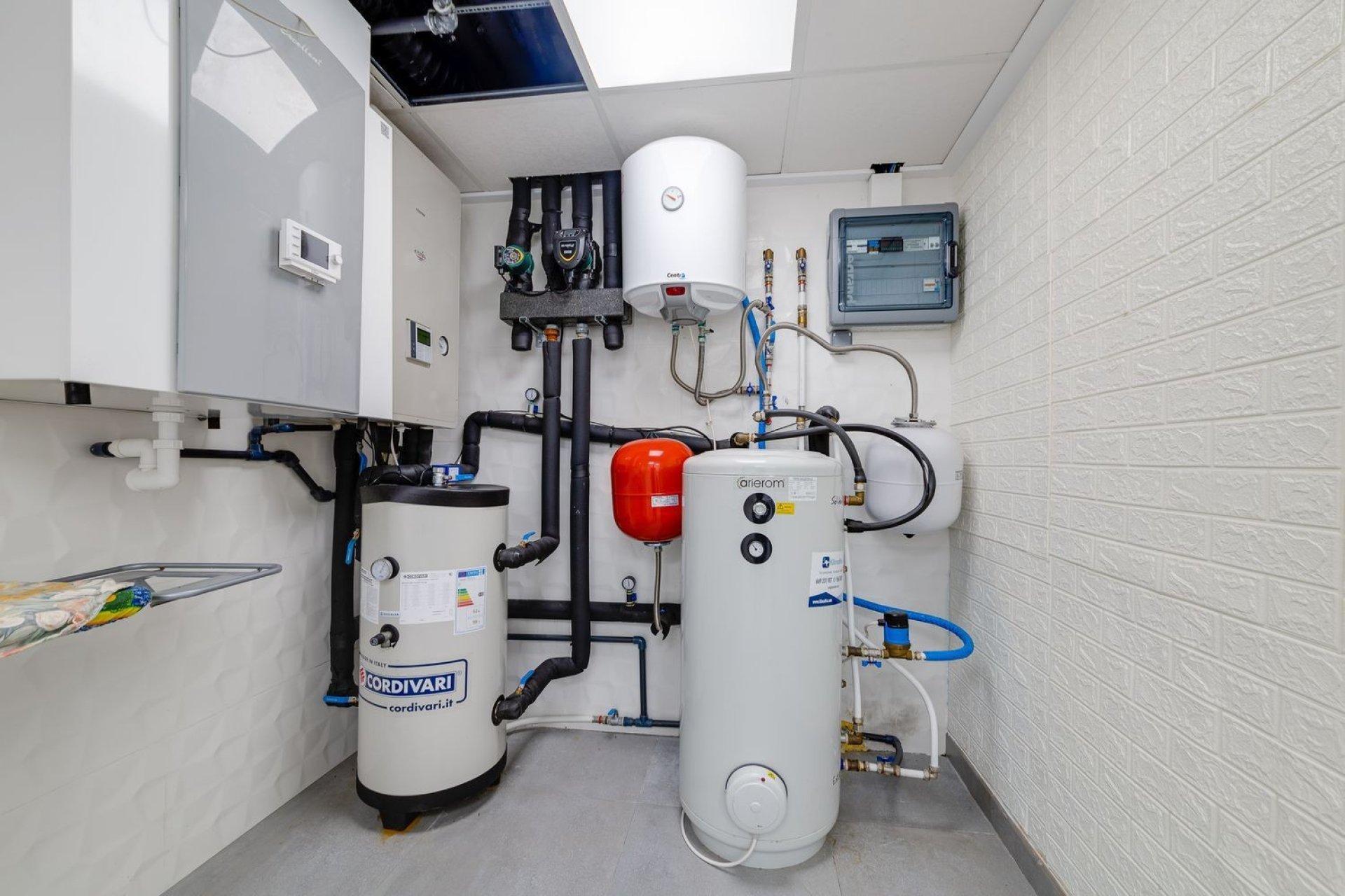 La propiedad incorpora un sistema inteligente de gestión del hogar, los baños incluyen radios integradas, y las ventanas y puertas exteriores de primer nivel con doble o triple acristalamiento garantizan confort y aislamiento. La eficiencia energética se refuerza con 18 paneles solares, que abastecen la electricidad de toda la vivienda.