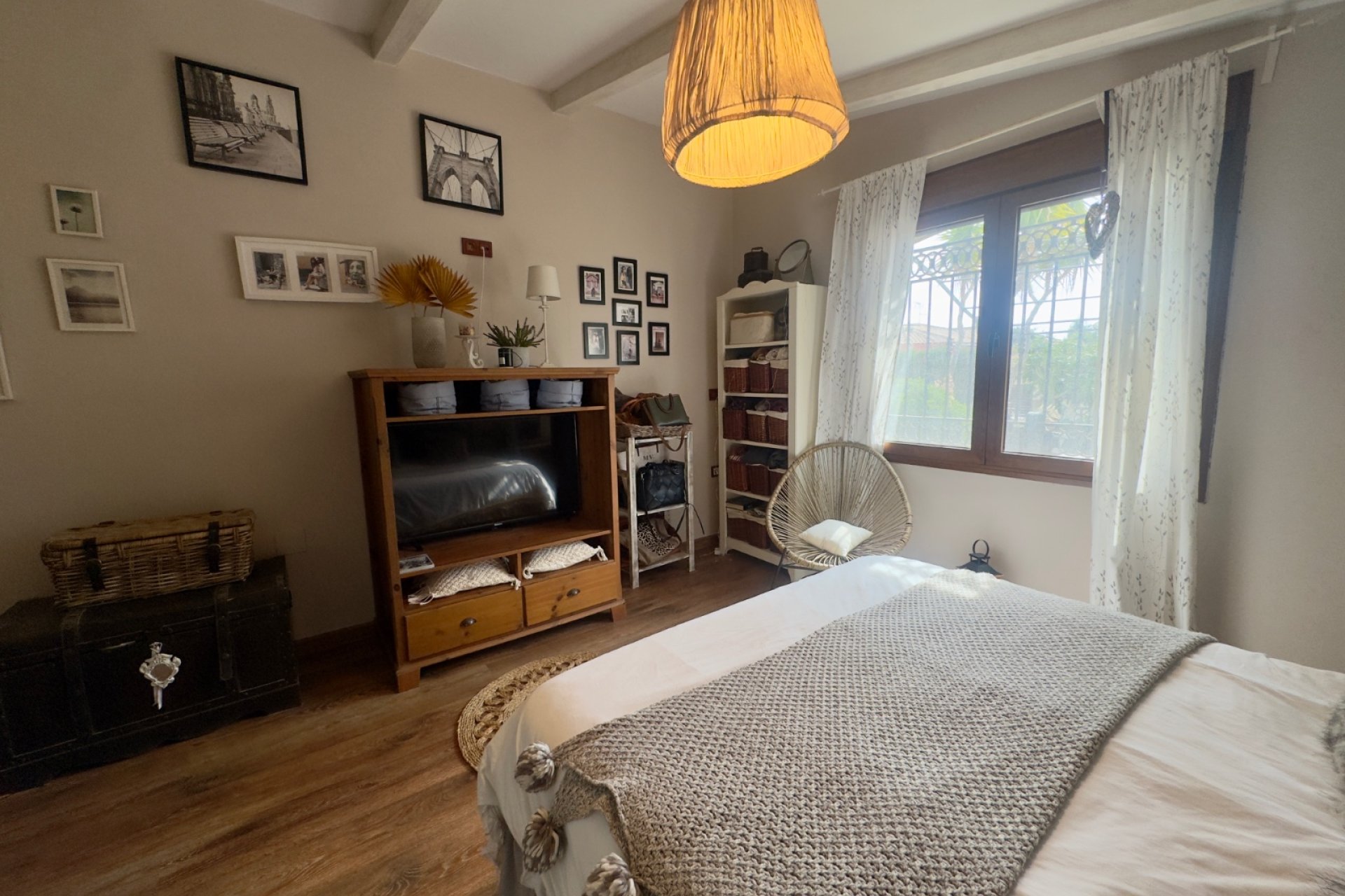 Espectacular villa independiente de estilo tradicional español situada en una ubicación privilegiada, a menos de 2 kilómetros de la playa y a poca distancia a pie de todos los servicios, comercios, restaurantes y zonas de ocio. Una propiedad que combina comodidad, amplitud y un enorme potencial en una de las zonas más demandadas. La vivienda se desarrolla íntegramente en una sola planta, lo que garantiza practicidad y confort en el día a día. Cuenta con 138 m² construidos sobre una magnífica parcela de 805 m², ofreciendo espacios amplios tanto en el interior como en el exterior. En el interior encontramos tres dormitorios dobles llenos de carácter, con excelente iluminación natural y espacio suficiente para almacenamiento. Los dos baños completos están diseñados para ofrecer funcionalidad y comodidad para toda la familia o invitados. El corazón de la vivienda es su amplio salón-comedor de concepto abierto, un espacio luminoso y acogedor ideal para reuniones familiares y momentos de descanso. La cocina es independiente, práctica y con gran potencial para modernizarla o adaptarla al gusto personal, manteniendo la esencia tradicional de la propiedad. Uno de los grandes atractivos de esta villa es su estupenda terraza cubierta, perfecta para disfrutar de comidas al aire libre, reuniones con amigos o largas veladas de verano aprovechando el excelente clima de la zona. El amplio jardín que rodea la vivienda ofrece infinitas posibilidades: desde la construcción de una gran piscina privada hasta la ampliación de la casa, la creación de una zona chill out, área de barbacoa o incluso un jardín paisajístico. La orientación sur garantiza sol durante todo el día, aportando luminosidad y calidez a la vivienda durante todo el año. Se vende sin amueblar, lo que permite diseñarla y decorarla completamente a medida, convirtiéndola en una residencia habitual ideal, una casa vacacional perfecta o una inversión con gran proyección de revalorización. Una propiedad con encanto, amplitud y un enorme potencial en una ubicación excelente cerca del mar.