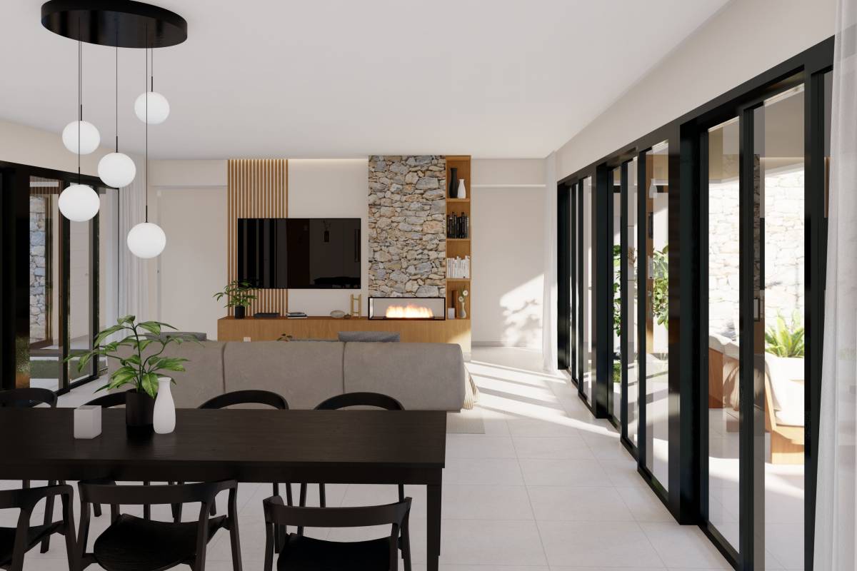 De buitenruimtes van deze vrijstaande eigendommen zijn een ware oase van rust. Elke woning beschikt over een privé tuin, perfect om van de buitenlucht te genieten en buitenbijeenkomsten te organiseren. De aanwezigheid van een pergola voegt een vleugje elegantie en functionaliteit toe, en biedt een schaduwrijke plek om te ontspannen. Bovendien beschikt elke eigendom over een privézwembad, dat een verfrissende plek biedt om van te genieten tijdens de warme zomerdagen. Het terras is een ander aantrekkelijk kenmerk van de buitenruimtes, dat extra ruimte biedt voor ontspanning en recreatie.