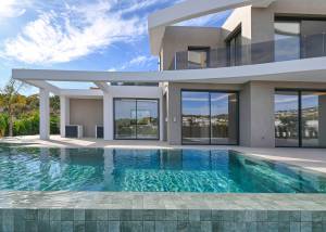 De buitenkant van de villa is ontworpen om optimaal te genieten van het mediterrane klimaat. Het beschikt over een privé tuin die een perfecte groene ruimte biedt om te ontspannen of voor buitenactiviteiten. Het terras is een ideale plek om te genieten van het uitzicht op zee, of u nu van de zon geniet of buiten dineert. Bovendien omvat de woning een privézwembad, perfect om af te koelen tijdens de warme zomerdagen. Toegang tot een privé garage zorgt voor comfort en veiligheid voor voertuigen.