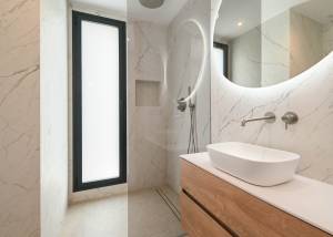 Het interieur van de villa is zorgvuldig ingedeeld om maximaal comfort en functionaliteit te bieden. Het bestaat uit vier slaapkamers, elk ontworpen om een gezellige en privéruimte te bieden. De vier badkamers zorgen voor comfort en privacy voor alle bewoners. De villa is uitgerust met airconditioning, wat het hele jaar door een aangename omgeving garandeert. Ingebouwde kasten bieden voldoende opbergruimte, waardoor orde en organisatie in huis behouden blijven.