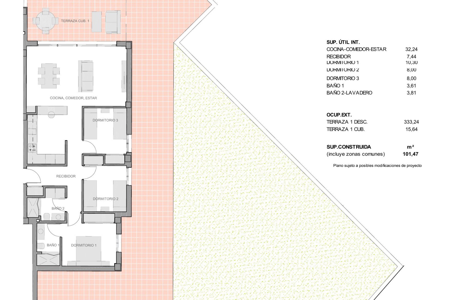 Het interieur is zorgvuldig ontworpen met modern comfort in gedachten. Elke woning biedt drie slaapkamers en twee badkamers, wat ruime gebieden biedt die ideaal zijn voor gezinnen of voor degenen die graag gasten ontvangen. De keramische en porseleinen vloeren voegen elegantie en onderhoudsgemak toe. Volledig gemeubileerd en uitgerust met moderne apparaten, zijn deze woningen direct klaar om in te trekken. De geïntegreerde airconditioning en inbouwkasten optimaliseren comfort en opslag, terwijl de pre-installatie het mogelijk maakt om het systeem aan te passen aan jouw behoeften.