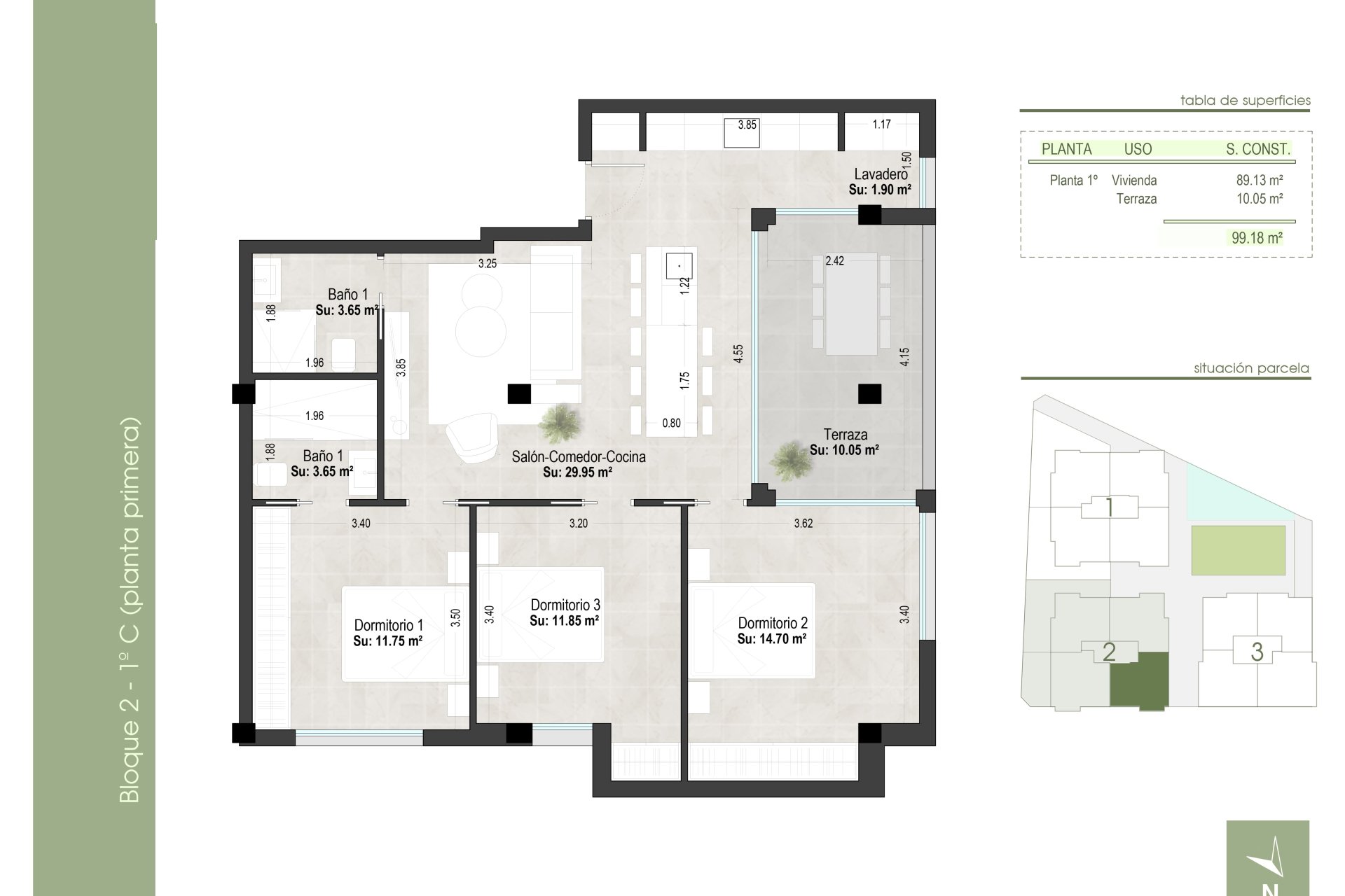Het interieur van deze woningen is ontworpen met comfort en praktische bruikbaarheid in gedachten voor het dagelijks leven. Er zijn veelzijdige indelingen beschikbaar met opties van 2 of 3 slaapkamers en altijd met 2 complete badkamers, aangepast aan verschillende gezinsbehoeften. Moderne apparaten vergemakkelijken dagelijkse taken, terwijl inbouwkasten de beschikbare opbergruimte maximaliseren. De keramische vloeren zijn niet alleen visueel aantrekkelijk, maar ook gemakkelijk schoon te maken, waardoor elke woning modern en uitnodigend is.