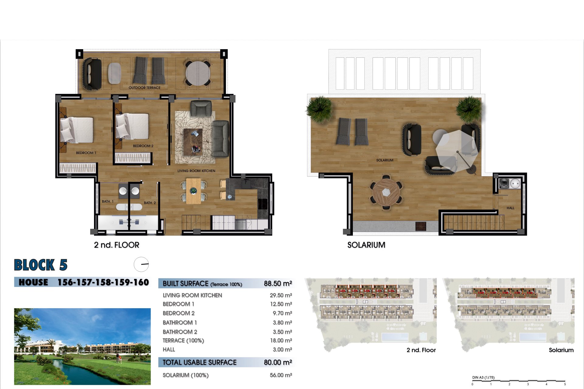 De woningen zijn ontworpen met een interieur dat moderniteit en comfort combineert. De vloeren van porseleinen tegels bieden niet alleen elegantie, maar ook onderhoudsgemak. Voorzien van moderne apparaten zijn de keukens zowel praktisch als visueel aantrekkelijk. Elektrische rolluiken samen met de video-intercom bieden een extra niveau van veiligheid en dagelijks comfort. De slaapkamers zijn uitgerust met inbouwkasten die de beschikbare ruimte optimaliseren en het netjes en schoon houden. We bieden flexibele indelingsopties met eenheden van 2 of 3 slaapkamers, en allemaal inclusief 2 complete badkamers.