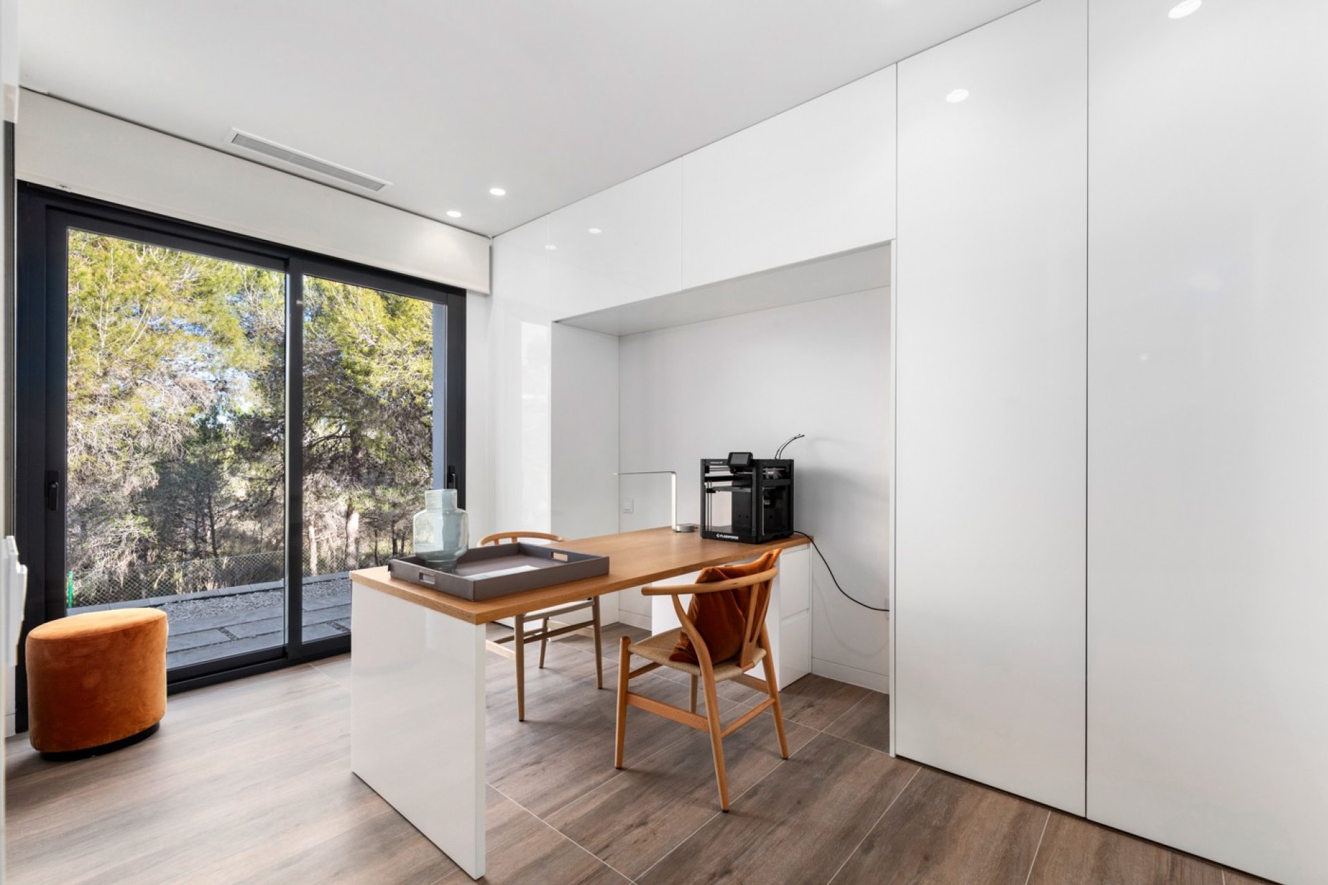 Te midden van het prestigieuze Las Colinas Golf & Country Club, een van de meest exclusieve golfresorts aan de Costa Blanca, bevindt zich deze adembenemende villa. Hier komen luxe, comfort en natuur samen in een unieke woonbeleving. Met een verfijnde architectuur en hoogwaardige afwerking biedt deze woning alles wat u zich kunt wensen voor een zorgeloos en stijlvol leven onder de Spaanse zon. Bij binnenkomst wordt u meteen verwelkomd door een ruime en lichte leefruimte, waar grote ramen een prachtig uitzicht bieden op de tuin De keuken, volledig uitgerust met moderne inbouwapparatuur, loopt naadloos over in de elegante woonkamer. Hier kunt u in alle rust genieten van een gezellige avond, omringd door luxe en comfort. De villa beschikt over vier royale slaapkamers, waarvan de master suite zich op de begane grond bevindt. Deze stijlvolle kamer heeft een eigen en-suite badkamer, wat zorgt voor extra privacy en gemak. Daarnaast is er op deze verdieping een apart gastentoilet. Op de benedenverdieping bevinden zich nog eens drie ruime slaapkamers, allemaal met een prachtig uitzicht op de natuurlijke tuin. De grote raampartijen laten het daglicht rijkelijk binnenstromen en brengen buiten naar binnen. Verder vindt u hier een moderne badkamer en een aparte wasruimte, praktisch en stijlvol afgewerkt. Het buitenleven is net zo indrukwekkend als het interieur. De prachtige tuin biedt een oase van rust, waar u volledig kunt ontspannen te midden van de natuurlijke schoonheid van het resort. Het verwarmde privézwembad nodigt uit voor een verfrissende duik op elk moment van de dag, terwijl de ruime terrassen de perfecte plek bieden om te genieten van lange zomerse avonden. Deze villa is voorzien van de nieuwste technologieën, waaronder een geavanceerd domoticasysteem, waarmee u eenvoudig de verlichting, temperatuur en beveiliging van de woning kunt regelen. Het Airzone-klimaatsysteem zorgt voor een perfect binnenklimaat in elke ruimte, terwijl de automatische rolluiken extra comfort en privacy bieden. Daarnaast dragen zonnepanelen bij aan een duurzame en energiezuinige leefomgeving. Voor uw gemak beschikt de woning over een privé parkeerplaats voor twee auto's, zodat u altijd verzekerd bent van een veilige en comfortabele plek voor uw voertuigen. Bovendien wordt deze exclusieve villa volledig gemeubileerd aangeboden, inclusief luxe meubels ter waarde van €30.000 – alles is tot in de puntjes afgewerkt en klaar om in te trekken. Wonen in Las Colinas Golf & Country Club betekent genieten van een uitzonderlijke levensstijl. Dit exclusieve resort biedt niet alleen een bekroonde golfbaan, maar ook een scala aan luxe voorzieningen, zoals sportfaciliteiten, uitstekende restaurants en een beveiligde woonomgeving. Bovendien bevinden de prachtige zandstranden van de Costa Blanca zich op slechts een korte rijafstand. Bent u op zoek naar een droomwoning waar luxe, natuur en exclusiviteit samenkomen? Dan is deze villa in Las Colinas de perfecte keuze. Neem vandaag nog contact met ons op voor een bezichtiging en laat u betoveren door deze unieke woonervaring.
