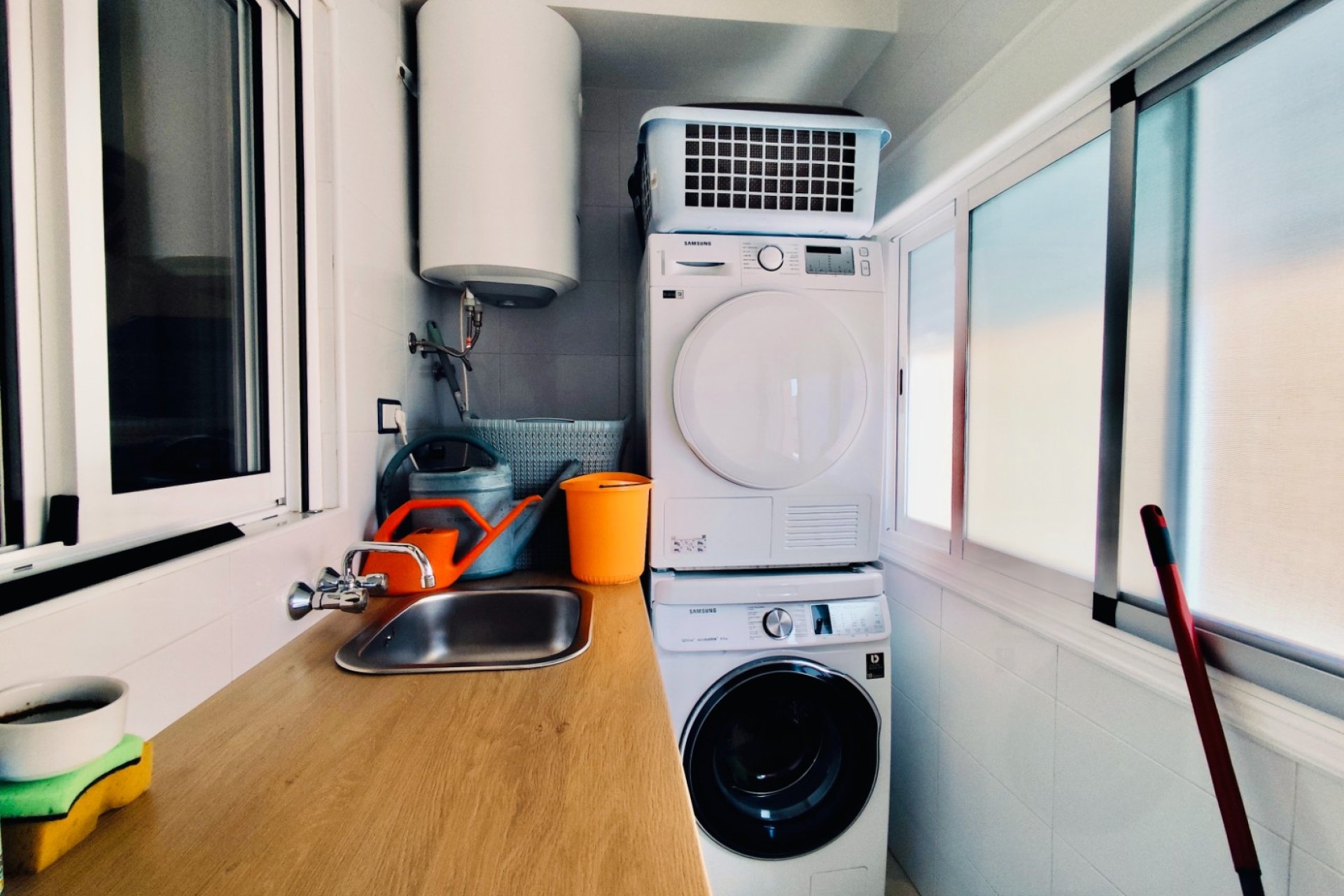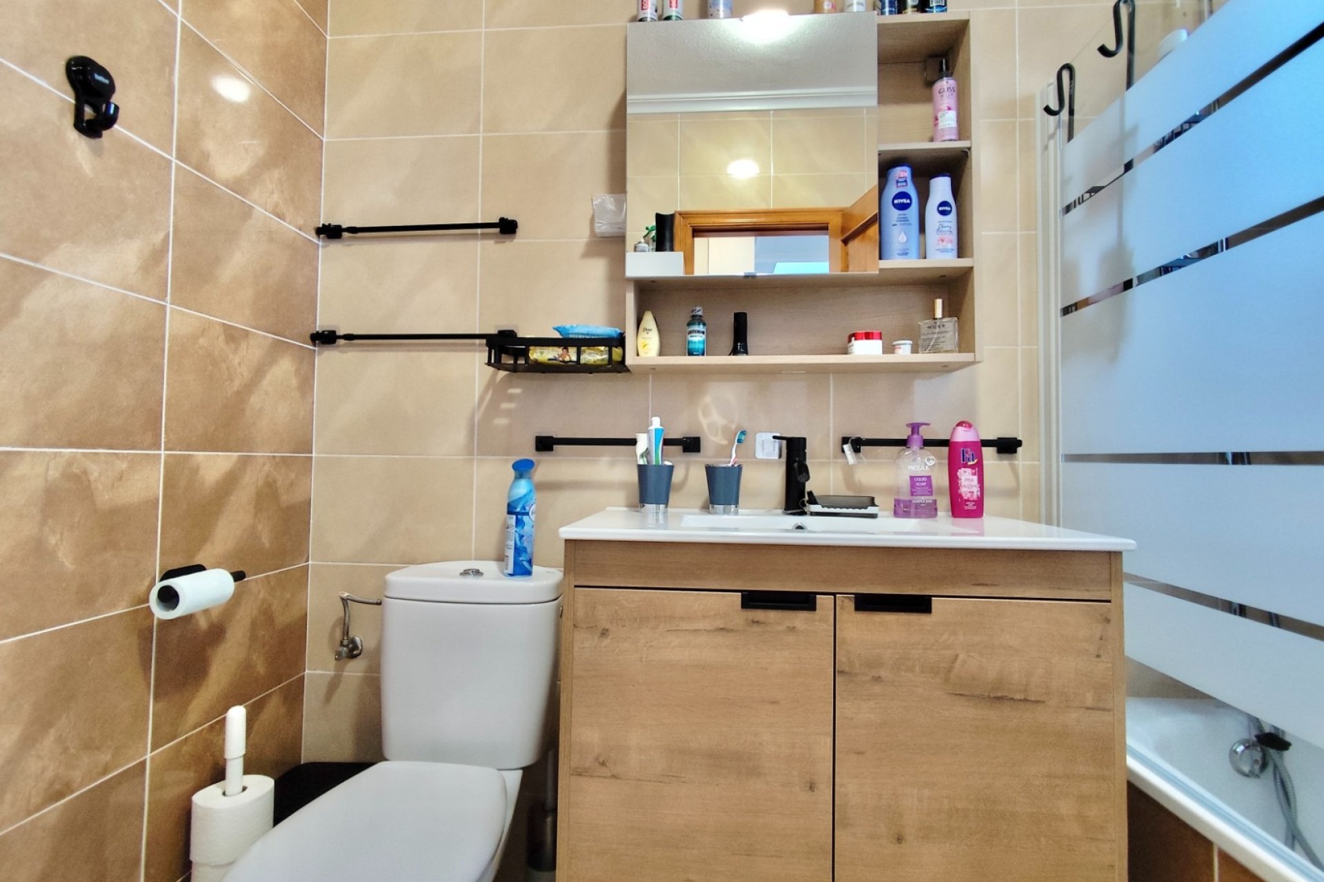 Deze tussenwoning in San Miguel biedt een moderne, ruime en comfortabele levensstijl. Met 4 slaapkamers en 167 m², verdeeld over drie verdiepingen en een bewoonbare kelder, is het ideaal voor gezinnen of mensen die op zoek zijn naar extra ruimte. Gebouwd in 2011 en voor het eerst bewoond in 2023, is het klaar om in te trekken, zodat je kunt genieten van een vrijwel nieuw huis. Op de begane grond vind je een ruime, lichte woonkamer en een open eetkamer, perfect om tijd door te brengen met het gezin of gasten te ontvangen. De keuken is volledig uitgerust met moderne apparatuur, en er is een afzonderlijke wasruimte, ideaal voor het wassen en organiseren van de was op een praktische en discrete manier. Vanuit de woonkamer heb je toegang tot de privé tuin, een perfecte plek om buiten te ontspannen, te barbecueën of simpelweg te genieten van de rust van je eigen huis. De bewoonbare kelder beschikt over een gezellige extra woonkamer, ideaal voor entertainment of ontspanning, en een ruime berging voor extra opslagruimte. Op de bovenste verdieping kun je genieten van een privé solarium, waar je optimaal kunt profiteren van het mediterrane klimaat en spectaculaire uitzichten kunt bewonderen. Bewoners hebben toegang tot een goed onderhouden gemeenschappelijk zwembad, ideaal om af te koelen op warme dagen. Gelegen in een rustige en prestigieuze wijk in San Miguel, biedt deze tussenwoning de perfecte combinatie van comfort, stijl en functionaliteit. Het is de ideale gelegenheid om het je nieuwe thuis te maken!