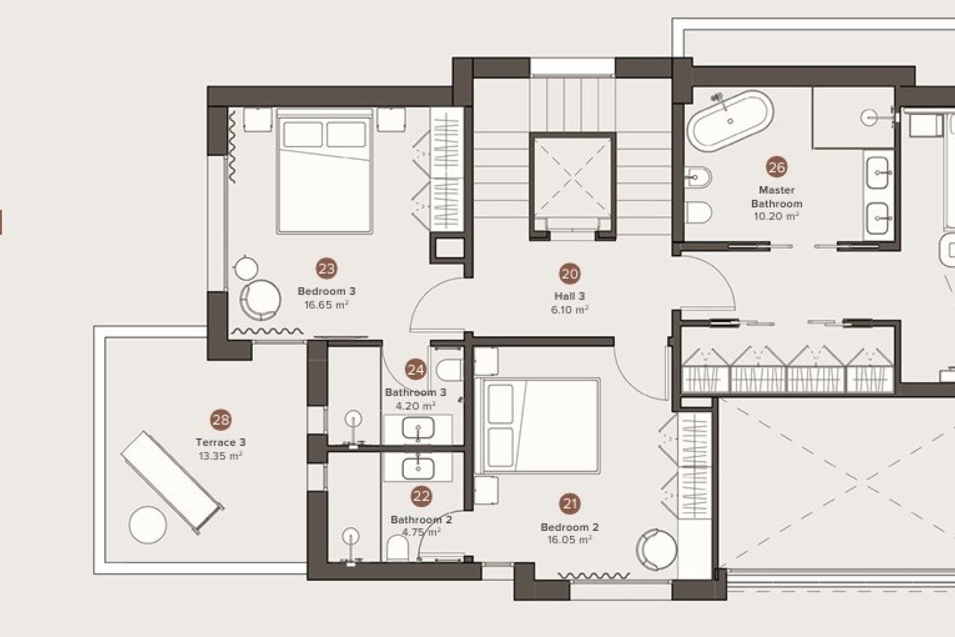 Het interieur van deze prachtige villa's is ontworpen met comfort en elegantie in gedachten. Met vier slaapkamers en vier badkamers is elke ruimte geoptimaliseerd om functionaliteit en ruimte voor het hele gezin te bieden. De vloeren van porseleinen tegels voegen een moderne en verfijnde uitstraling toe. De inbouwkasten bieden efficiënte opbergoplossingen, waardoor het ontwerp schoon en opgeruimd blijft. Bovendien heeft elke villa een privégarage, wat zorgt voor gemak en bescherming voor uw voertuigen.