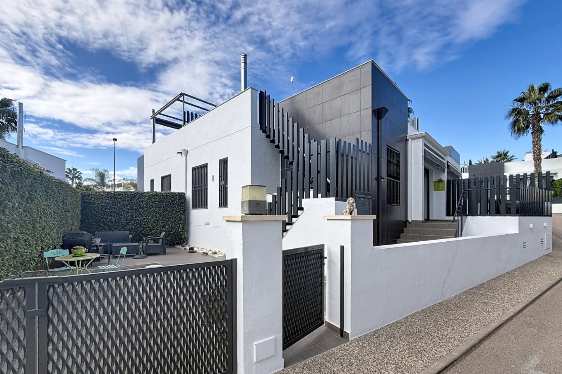Wij presenteren u deze prachtige, moderne woning in een rustige en veilige woonwijk van Villamartín (Alicante, Costa Blanca) . Deze unieke woning ligt op slechts 300 meter van het populaire winkelcentrum La Fuente en op 5 km van de mooiste stranden van Orihuela Costa en is ideaal voor wie op zoek is naar comfort, privacy en een toplocatie .