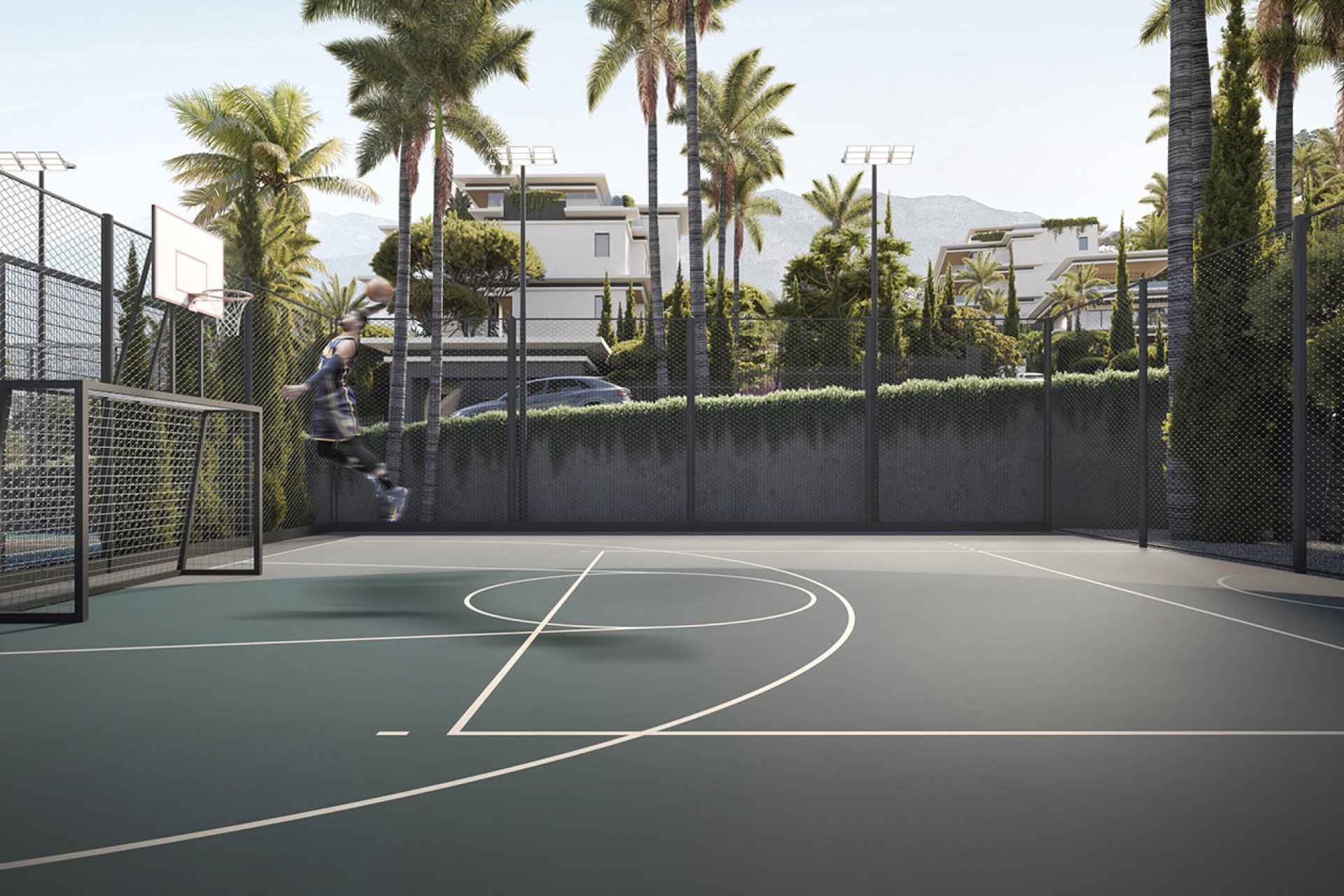 De buitenomgeving van deze residentie in Mijas is ontworpen om te genieten van het mediterrane klimaat. De eigendommen beschikken over privé tuinen en terrassen, perfect om buiten te ontspannen. De nabijheid van de zee, op slechts 5 km afstand, maakt het mogelijk om te genieten van de zeebries en panoramische uitzichten die de woonervaring op deze plek verrijken. Bovendien maximaliseert het architectonische ontwerp van de woningen het uitzicht op zee en integreert het het natuurlijke landschap met het comfort van thuis.