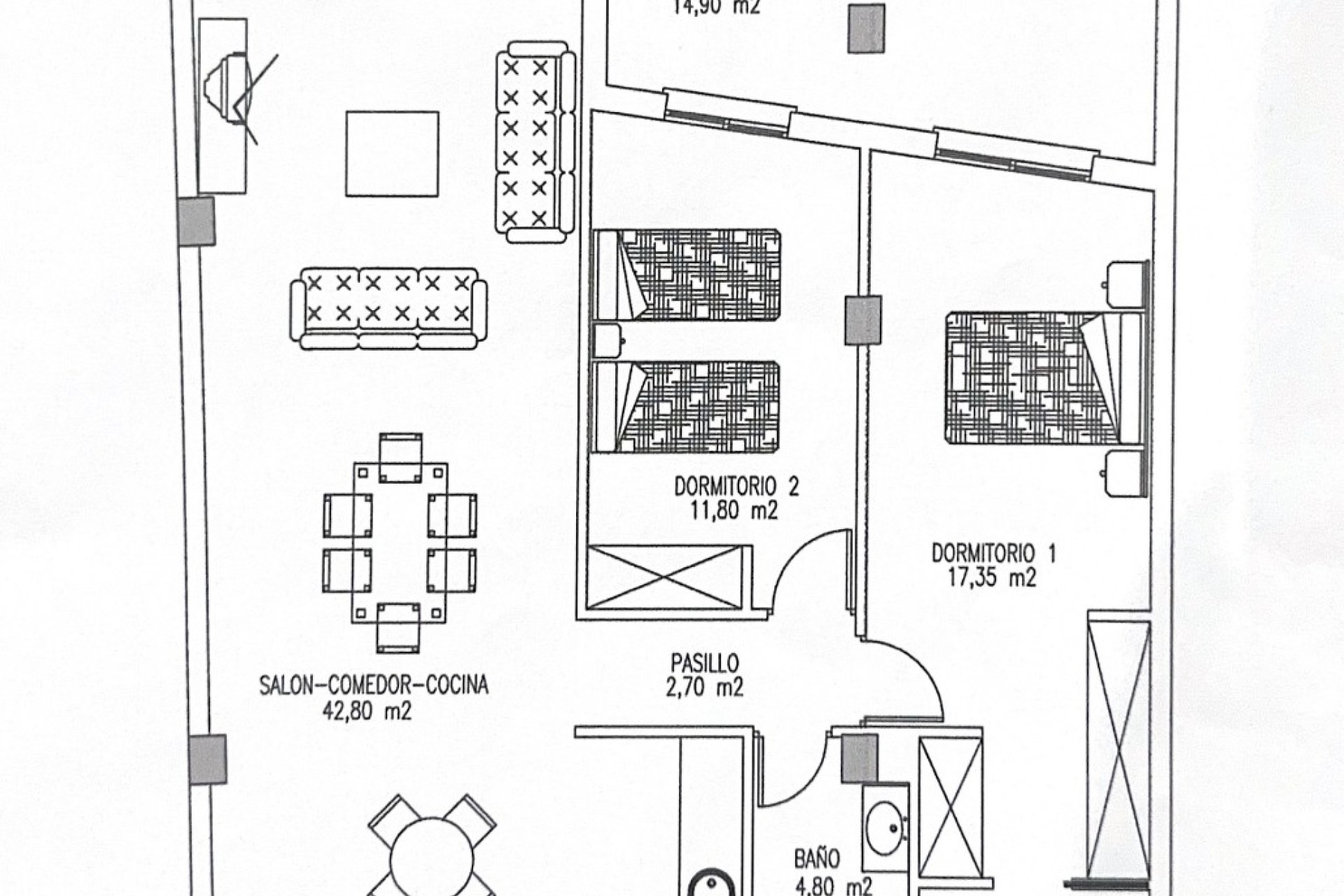 Ontdek dit uitzonderlijke appartement van 95 m², nieuw en klaar om in te trekken, gelegen op de eerste verdieping van een gebouw met lift. Geniet van een ruime en lichte woonkamer, inclusief een woonkamer met een volledig uitgeruste open keuken, met een totale oppervlakte van 42,80 m², en directe toegang tot een terras van 15 m², ideaal voor uw ontspanningsmomenten. Het appartement beschikt over twee grote slaapkamers: een ouderslaapkamer van 17,35 m² met een aangrenzende badkamer van 4,40 m², en een tweede slaapkamer van 11,80 m² met een aparte badkamer van 4,80 m². Moderne comfort is gegarandeerd met Airzone airconditioning in elke kamer en een energiezuinige boiler, op afstand bedienbaar via een app. Daarnaast profiteert u van twee parkeerplaatsen in de ondergrondse garage, elk met een opslagruimte van 10 m², die apart te koop zijn. Gelegen op slechts 800 meter van de zee, bevindt dit appartement zich in het hart van een rustige wijk, dicht bij alle voorzieningen. Het kan gemeubileerd worden verkocht, met op maat gemaakte meubels van hoge kwaliteit, of ongemeubileerd. Mis deze unieke kans niet om een uitzonderlijk pand te verwerven! Neem vandaag nog contact met ons op voor meer informatie of om een bezichtiging te regelen.