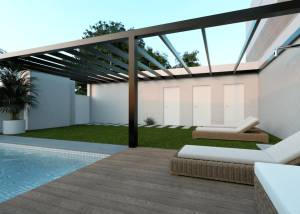 The exteriors of these homes are designed to maximize enjoyment of the Mediterranean climate. Each property features a private garden, ideal for creating a personal green space or enjoying outdoor moments. The terraces, spacious and functional, offer a perfect place to relax or share with friends and family. Additionally, the homes have a solarium, providing extra space for sunbathing or enjoying the views. The presence of pergolas adds a touch of elegance and functionality, allowing enjoyment of the outdoors with sun protection.