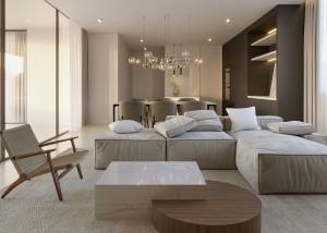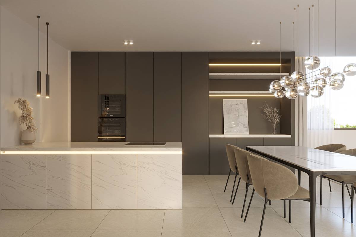 The exteriors of these homes are designed to maximize enjoyment of the Mediterranean climate. Each property features private terraces, perfect for outdoor relaxation or al fresco dining. Additionally, some units offer solariums, providing extra space for leisure and relaxation. The inclusion of pergolas adds a touch of elegance and functionality, allowing enjoyment of the outdoor space with shade and style. The homes are equipped with jacuzzis, offering an additional luxury for relaxation and personal well-being.