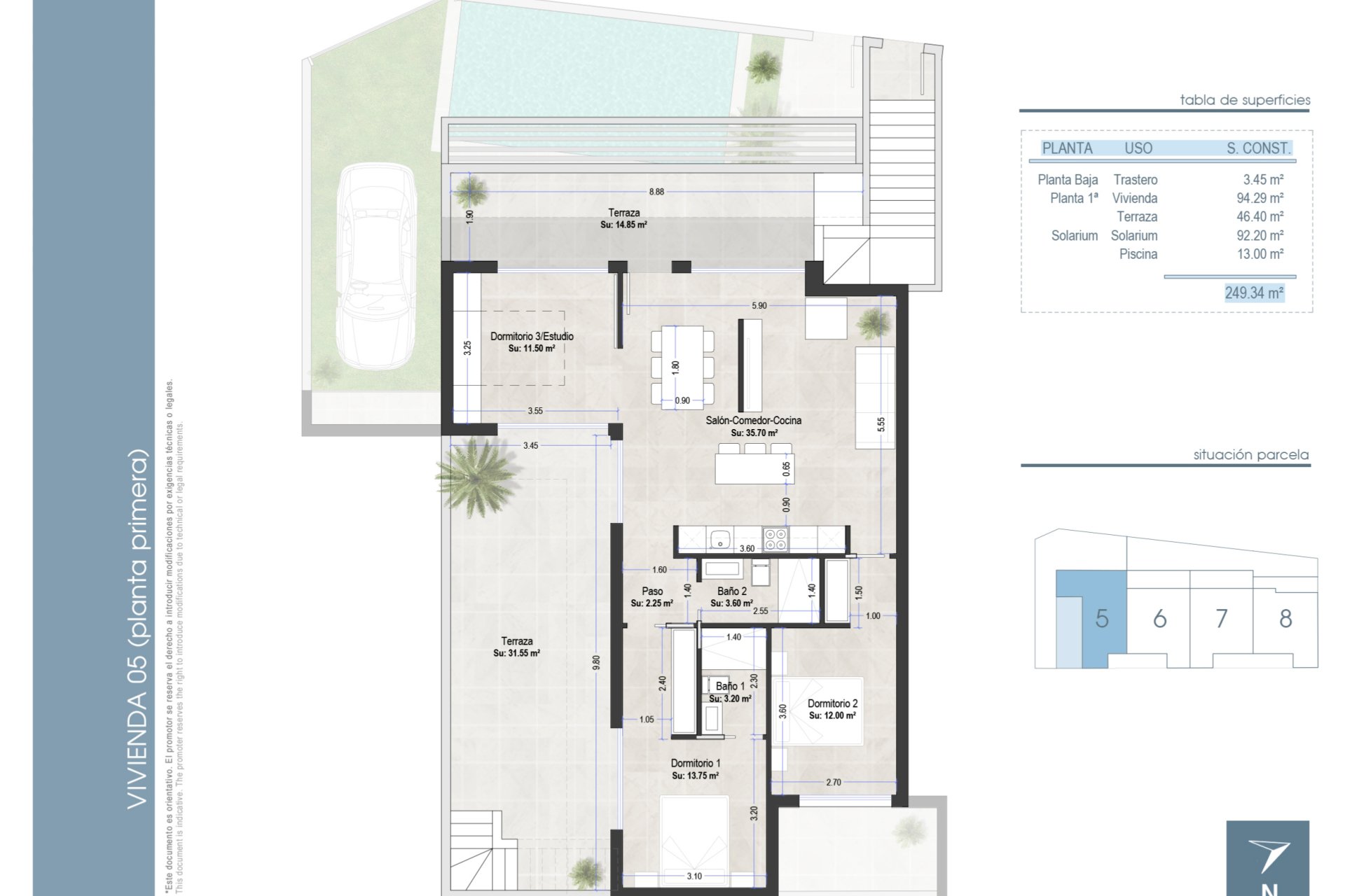 In the picturesque town of Las Esperanzas, an exclusive collection of bungalows is presented that redefines the concept of modern living just 2 km from the sea. Alicante Spain Properties offers a total of 8 properties designed for those seeking comfort and privacy. Available in versions with solarium or garden, each bungalow has been meticulously planned to provide a unique experience. The proximity to the airport, located just 15 km away, is ideal for frequent travelers. Equipped with high-end appliances and built-in wardrobes, these homes are ready to be inhabited from day one.